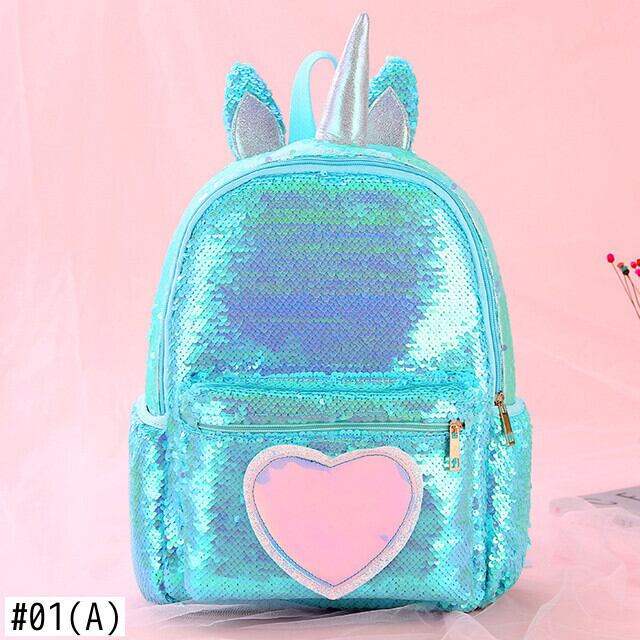 新作 子供グリッタースパンコールユニコーンバックパック十代の少女ハートショルダーバッグ子供リュックサック旅行バックパック