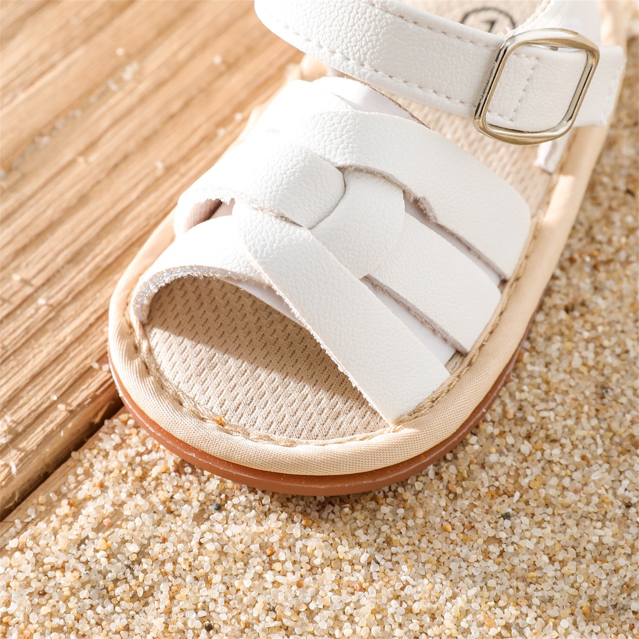新作 PatPat ベビー/トドラー 無地 編み込みサンダル プレウォーカーシューズ