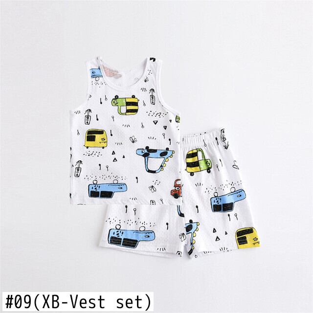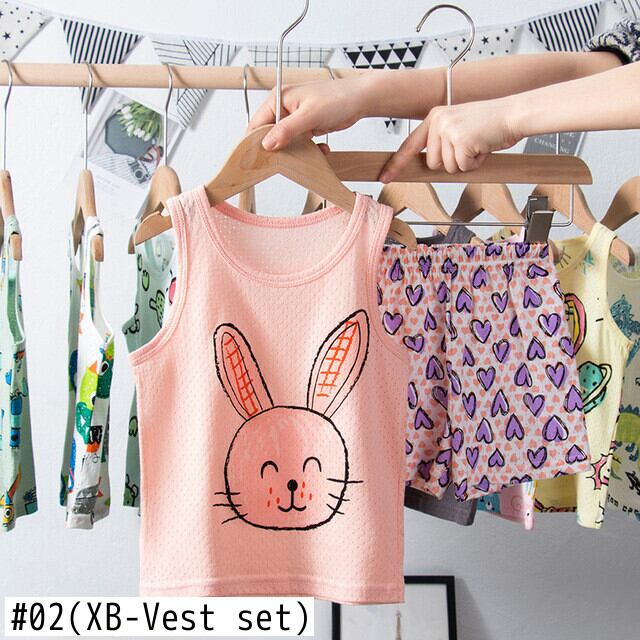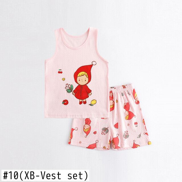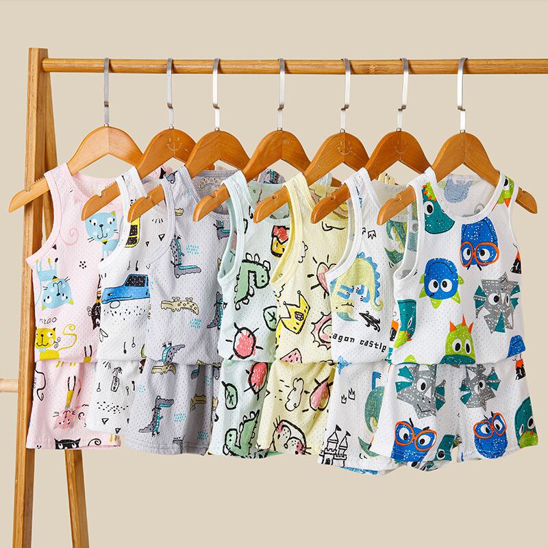 新作 2022 夏男の子女の子セット綿パジャマ子供パジャマベビーホームスーツメッシュ漫画ベストショーツから 2 に 7Years