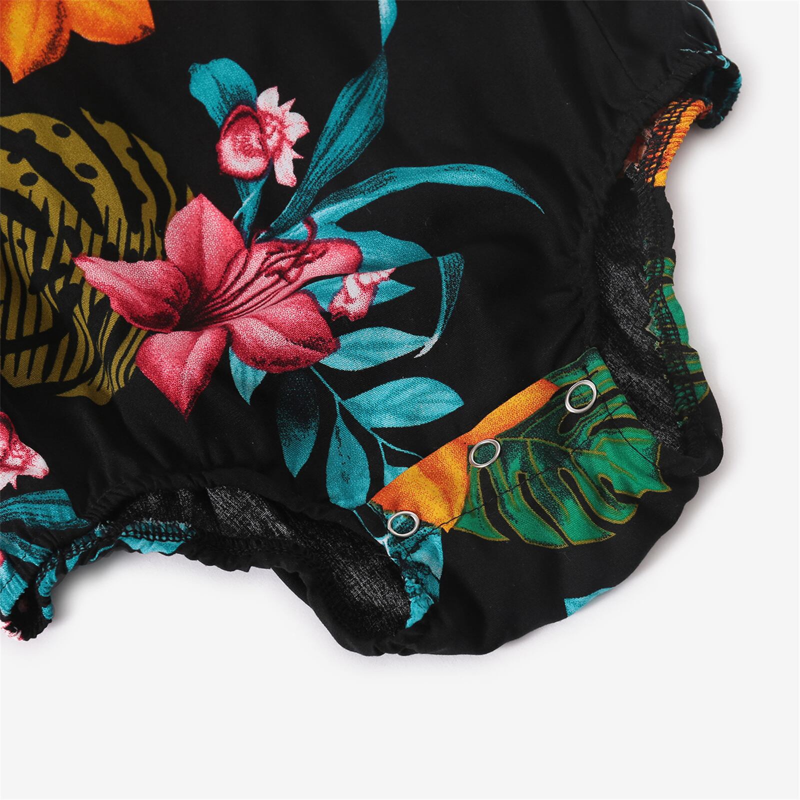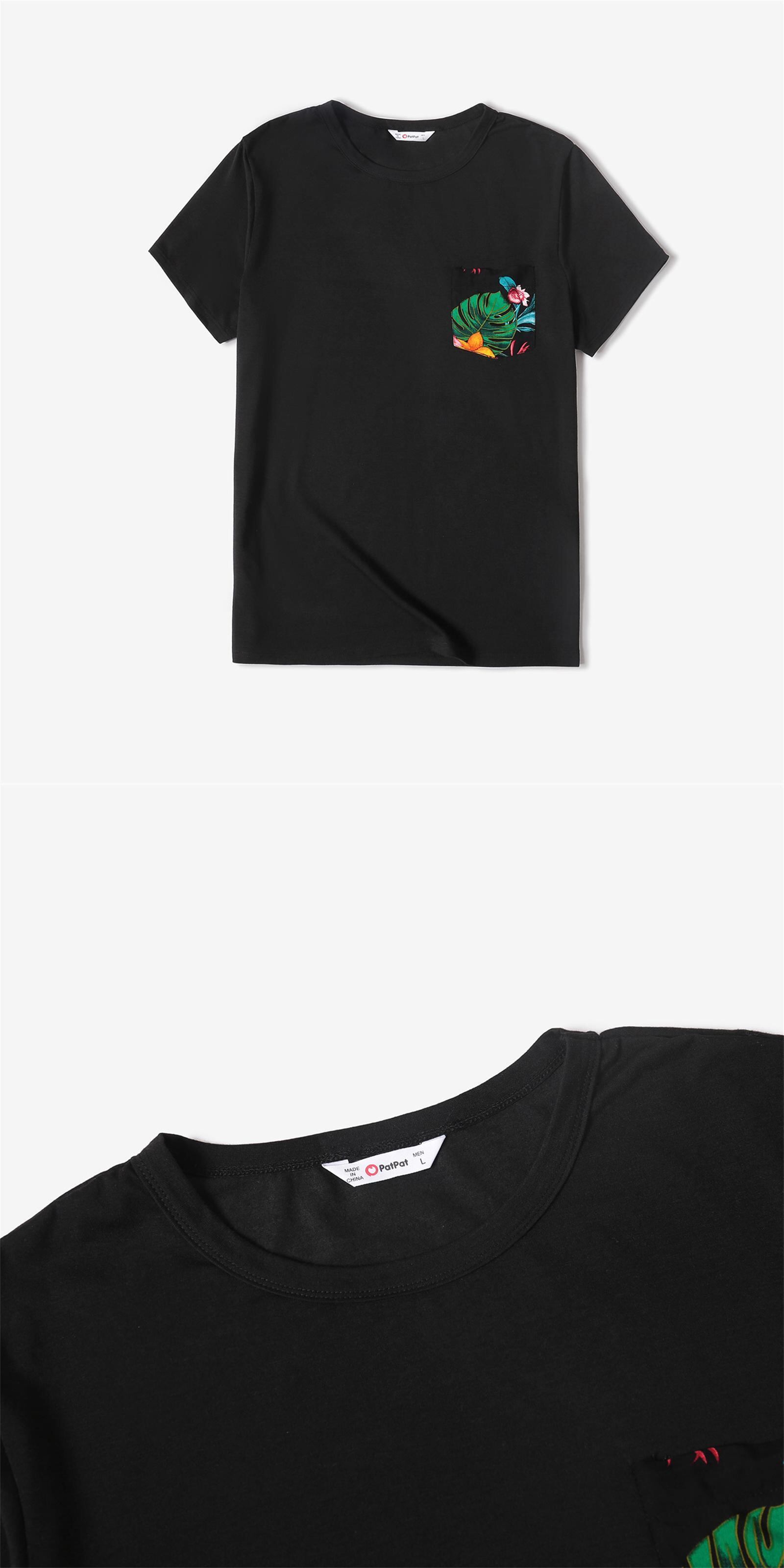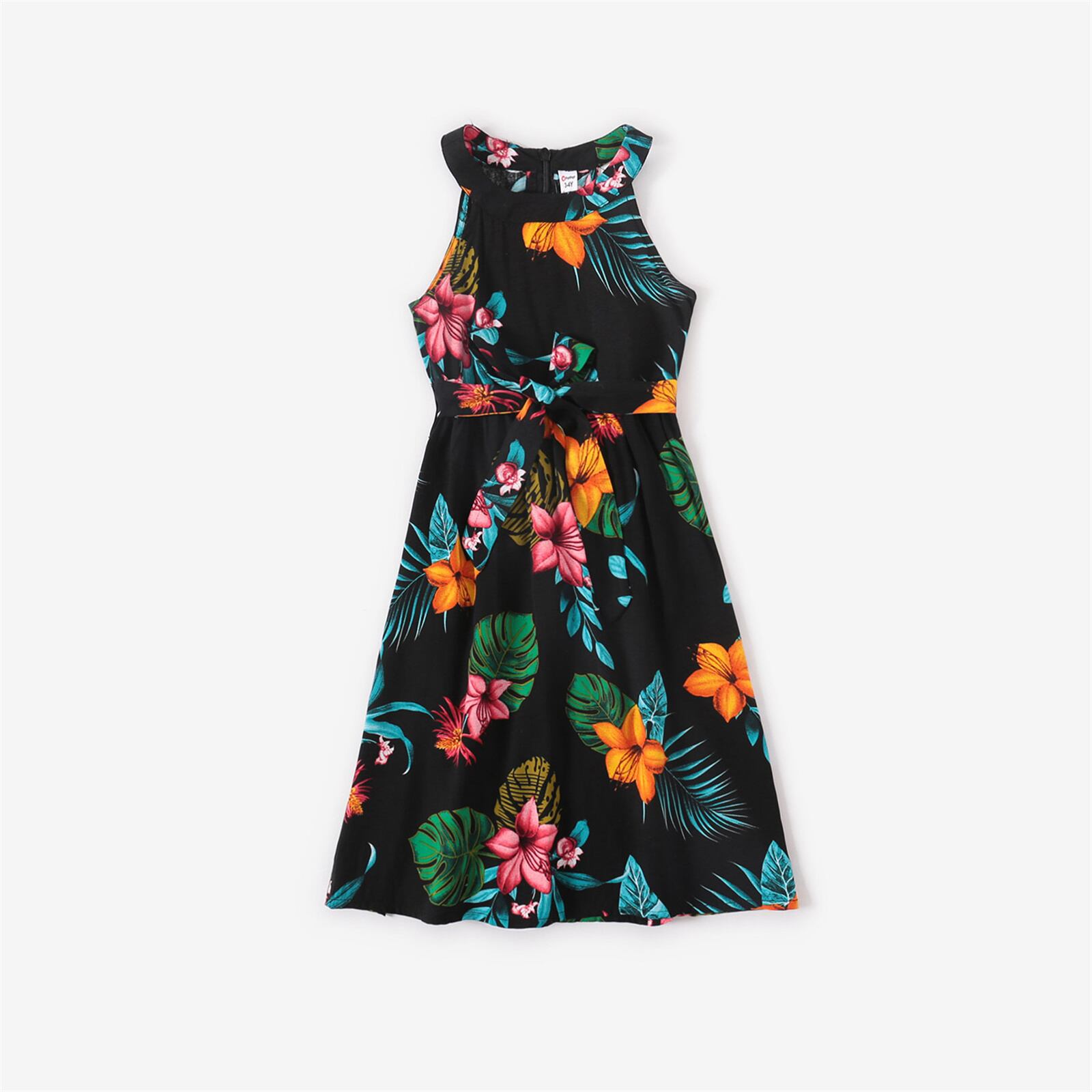 新作 PatPatファミリーマッチングフローラルプリントブラックホルターネックノースリーブマキシドレスと半袖Tシャツセット