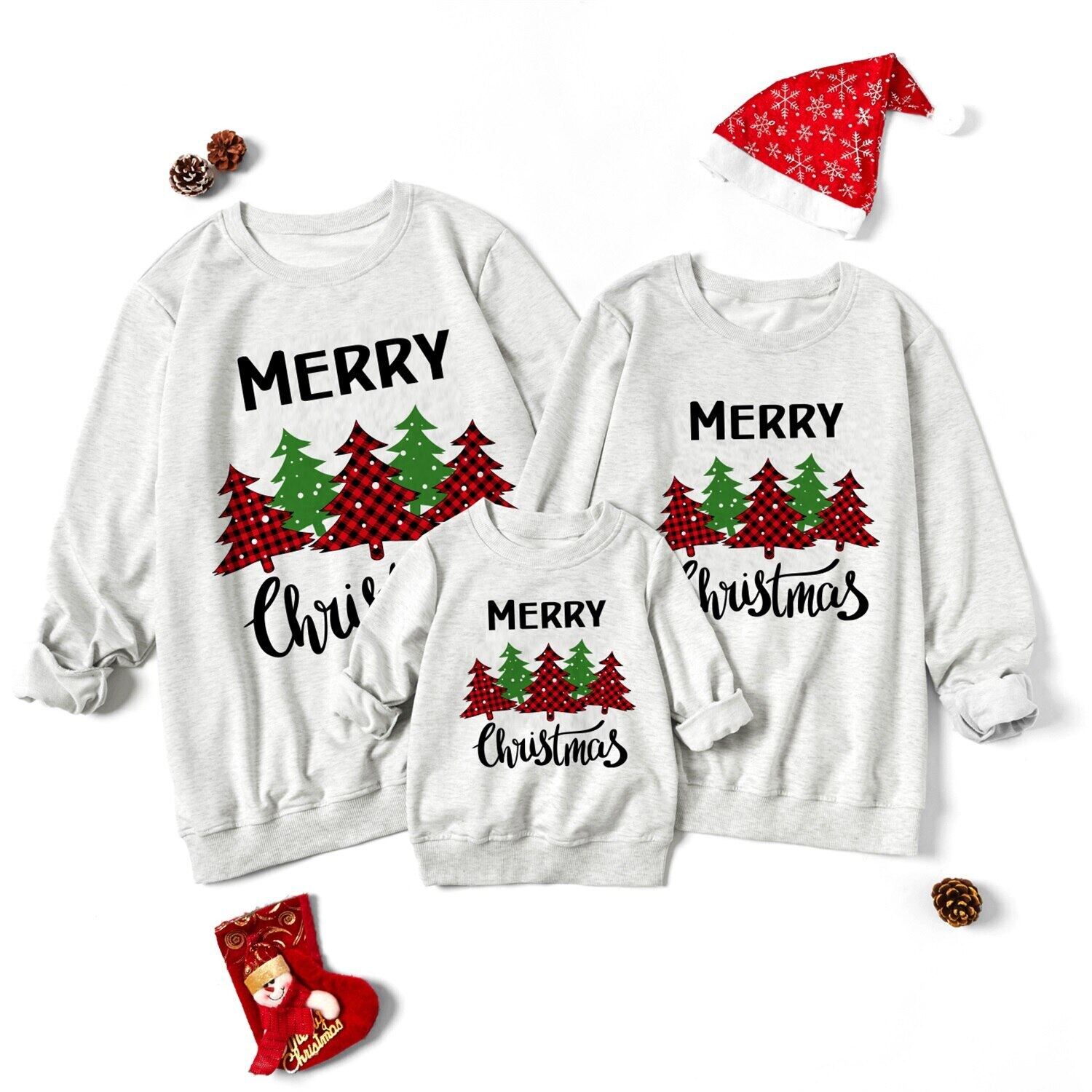 新作 PatPat クリスマス ツリー レター プリント グレー ファミリー マッチング 長袖 スウェットシャツ