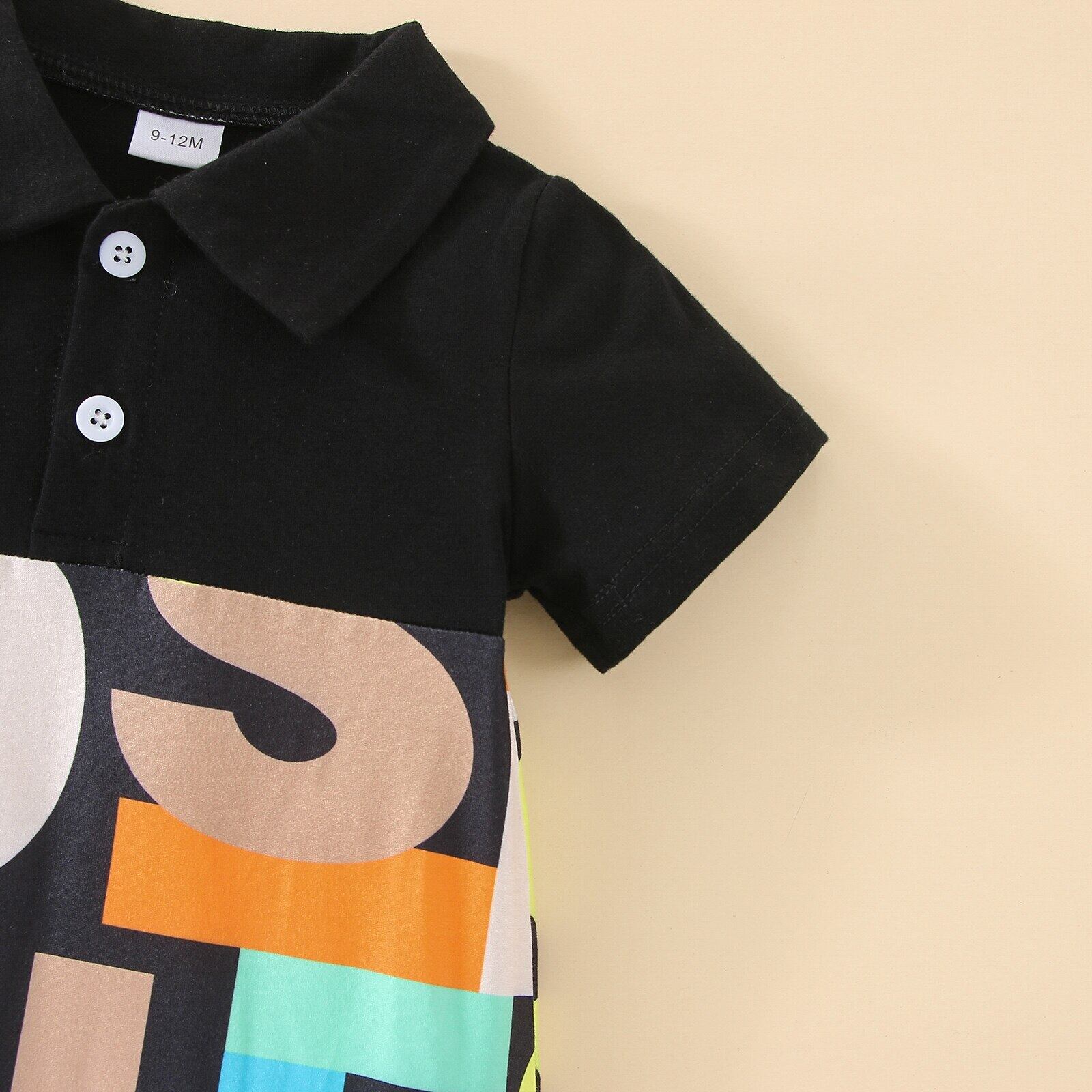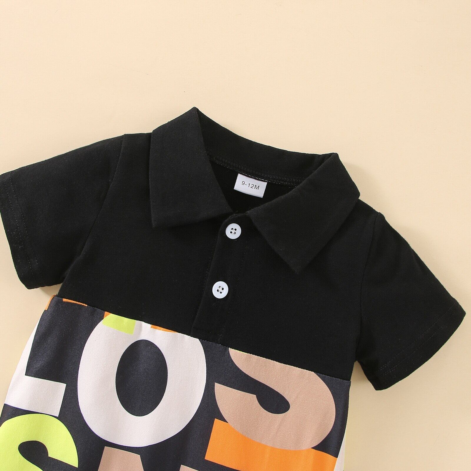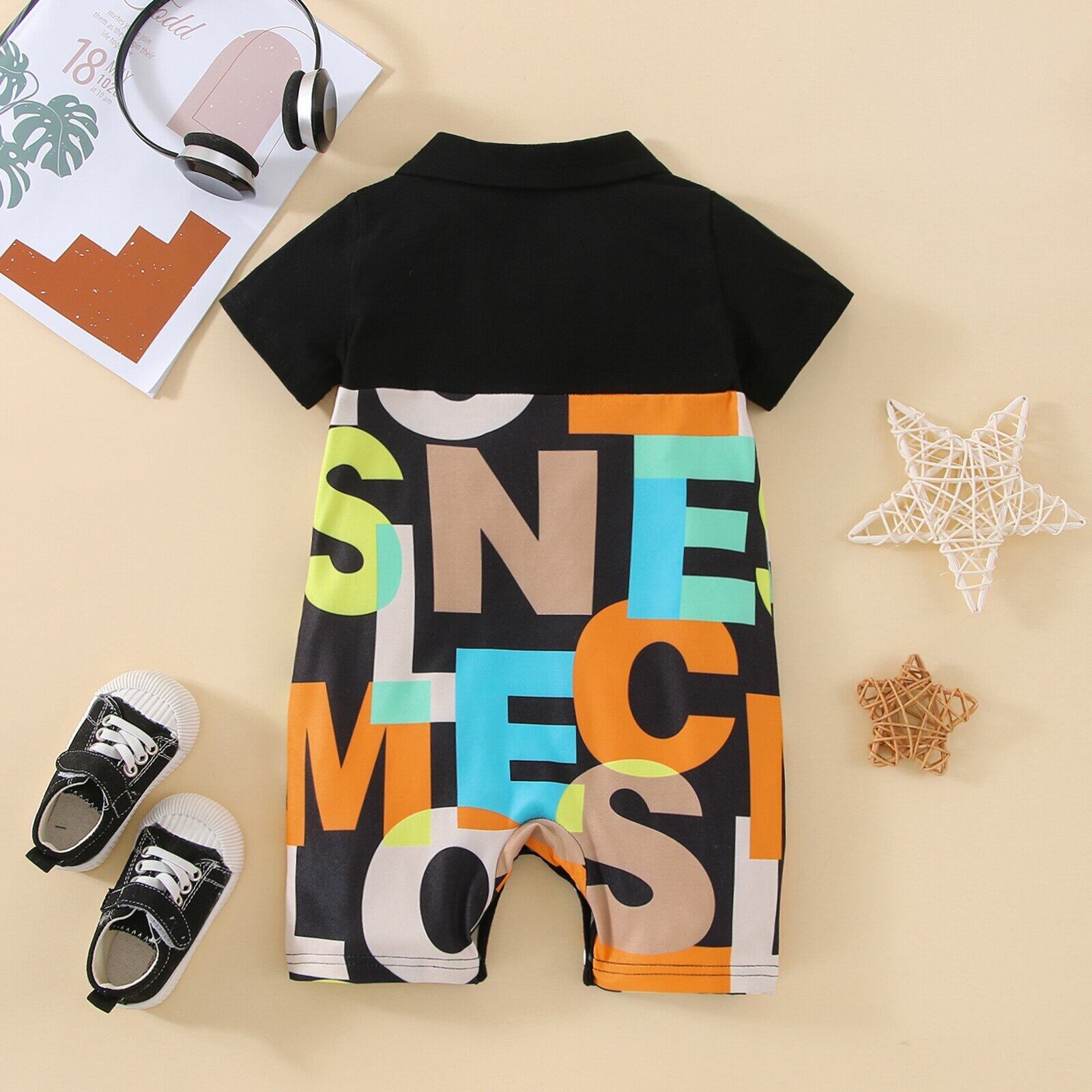 新作 PatPat ベビー 男の子 ポロネック オールオーバー レタープリント つなぎ 半袖 ロンパース