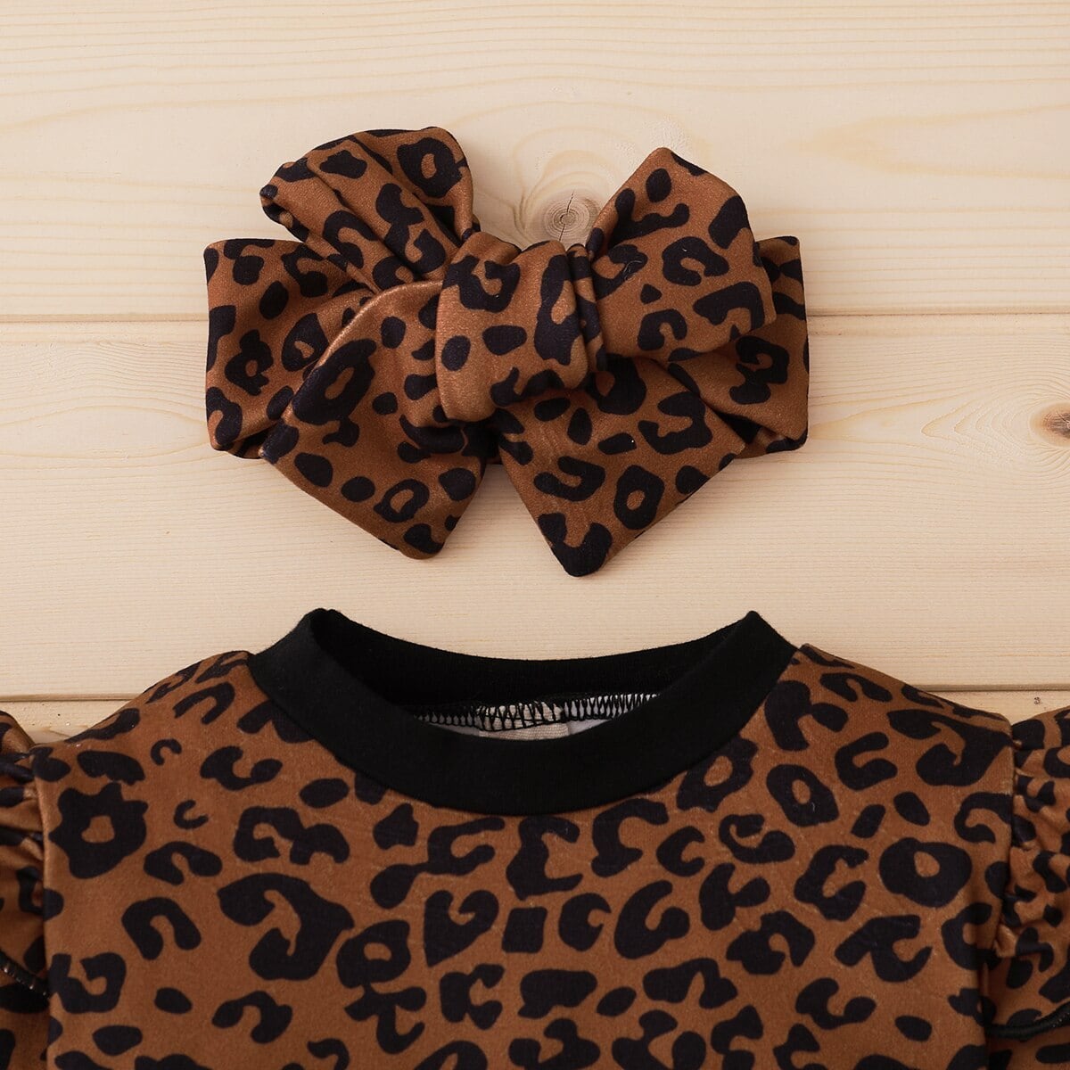 新作 PatPat 2ピース 幼児 女の子 ヒョウ柄 フリル長袖トップとレイヤードパンツセット