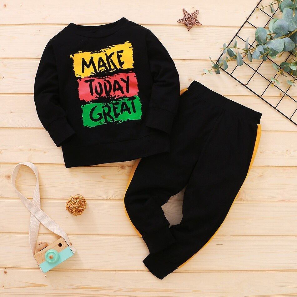 新作 PatPat 2021 春秋 2点セット ベビー 幼児 レタープリント プルオーバー パンツセット キッズ 男の子 服セット