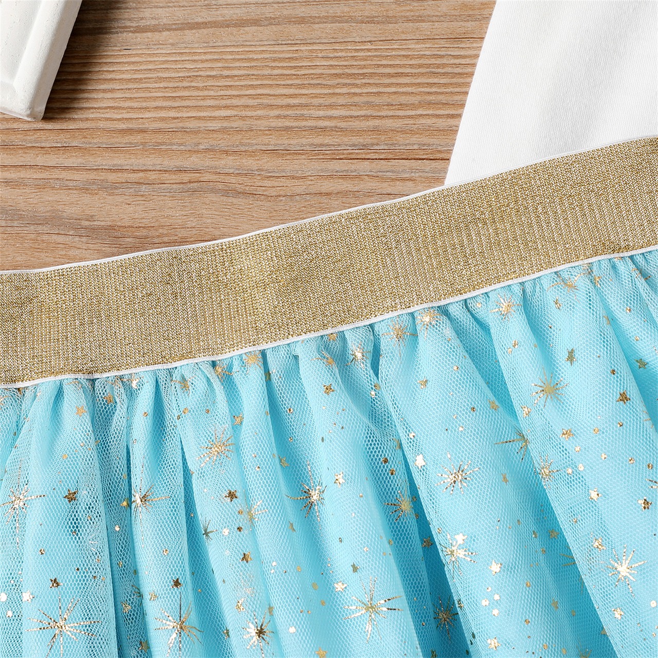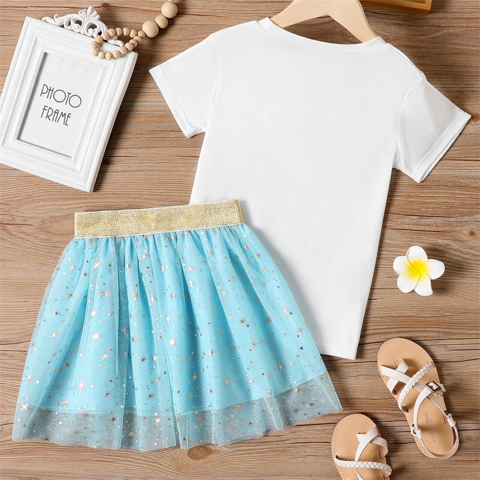 新作 PatPat 2 ピース キッド ガール スパンコール 半袖 ホワイト ティーとスター グリッター メッシュ スカート セット