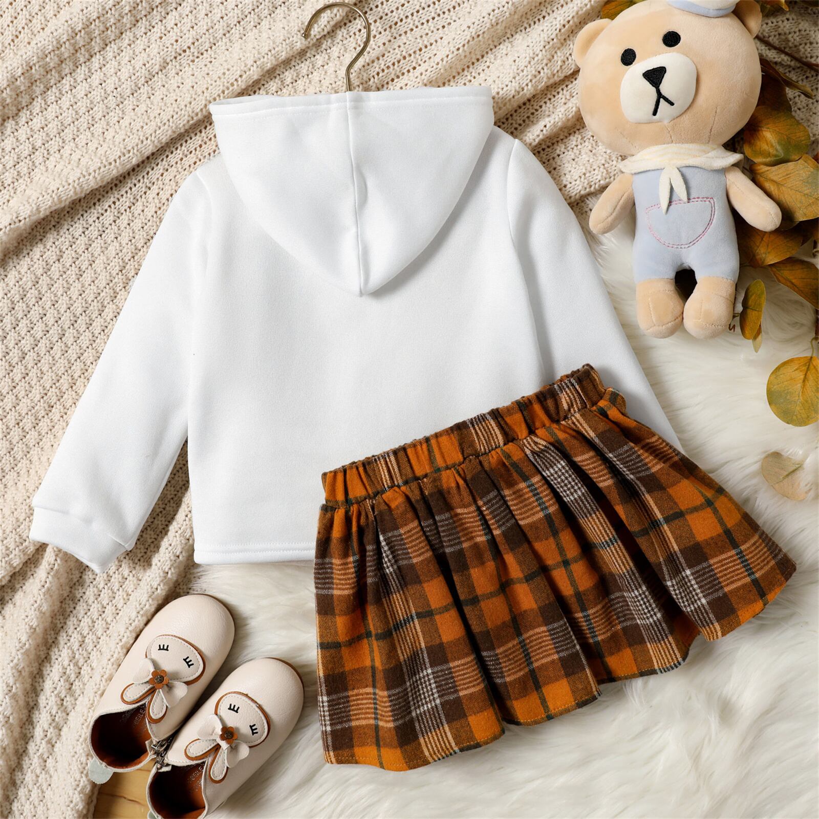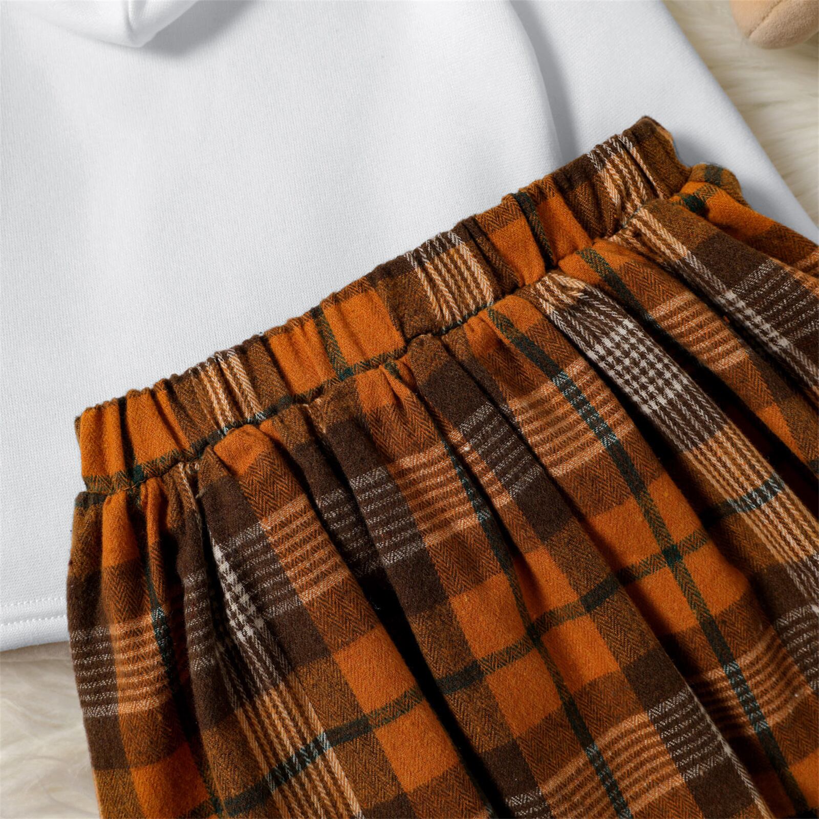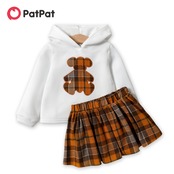 新作 PatPat 2ピース 幼児 女の子 クマ 刺繍 パーカー スウェットシャツとチェック柄スカート セット