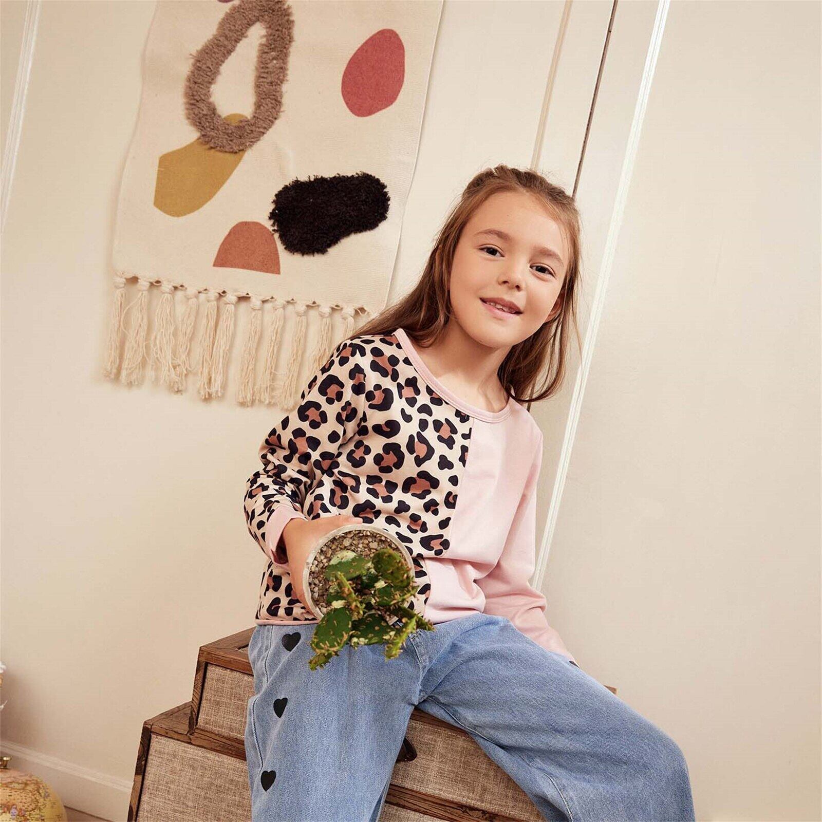 新作 PatPat ピンク スプライシング ヒョウ ロングスリーブ スウェットシャツ ママと私