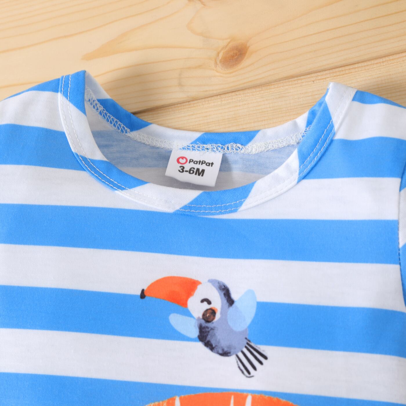新作 PatPat ベビー 男の子 漫画 ライオン プリント ブルー ストライプ 半袖 ロンパース