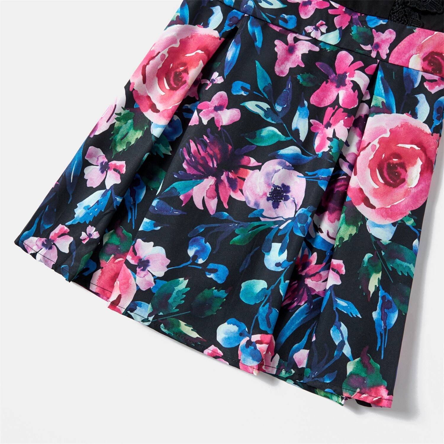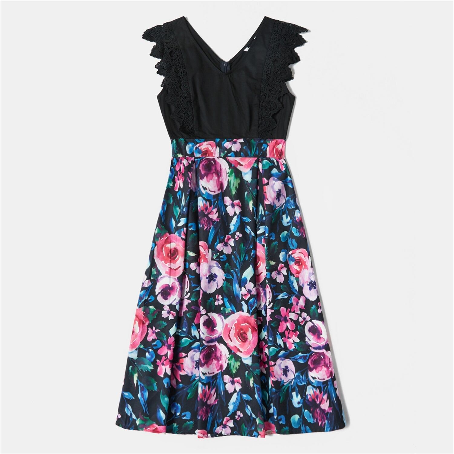 新作 PatPat フローラル プリント レース スプライス ノースリーブ マッチング ブラック ミディ タンク ドレス