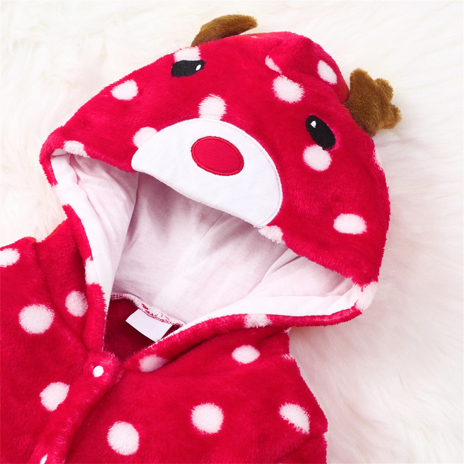 新作 PatPat ベビーガール クリスマス 鹿 刺繍 枝角 水玉 フード付き ファジー ジャンプスーツ