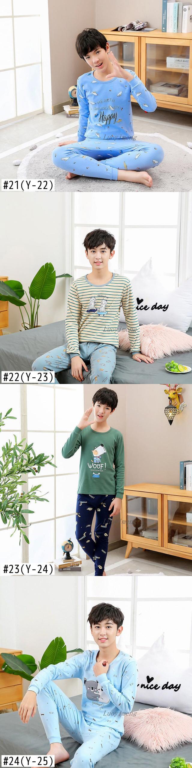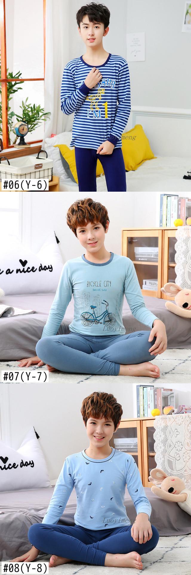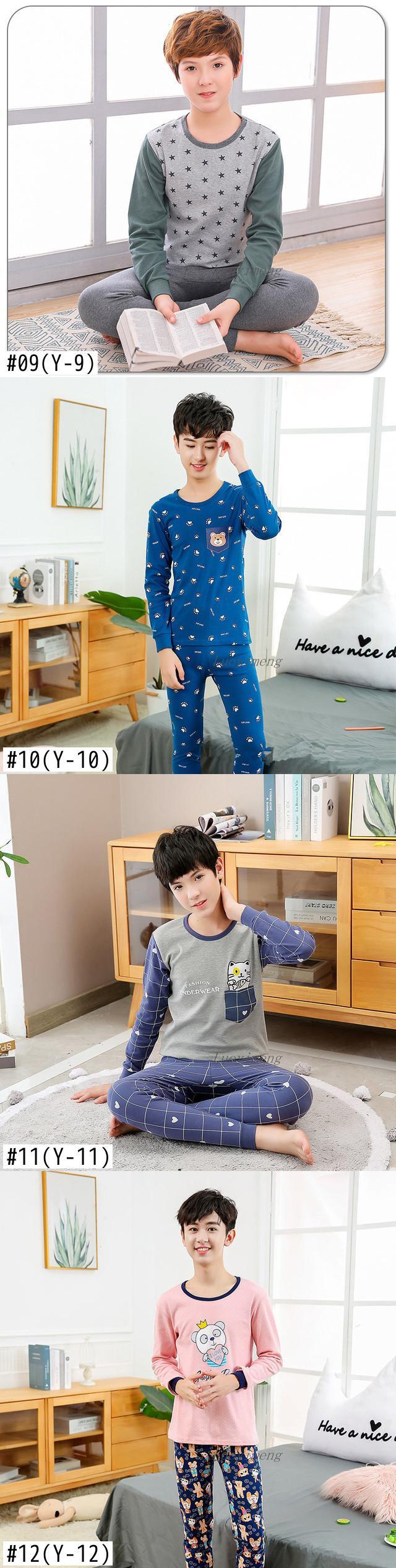新作 秋の男の子服コットンボーイズパジャマセット子供スーツナイトウェアビッグボーイズ服パジャマ十代の少年ホームウェアスーツ
