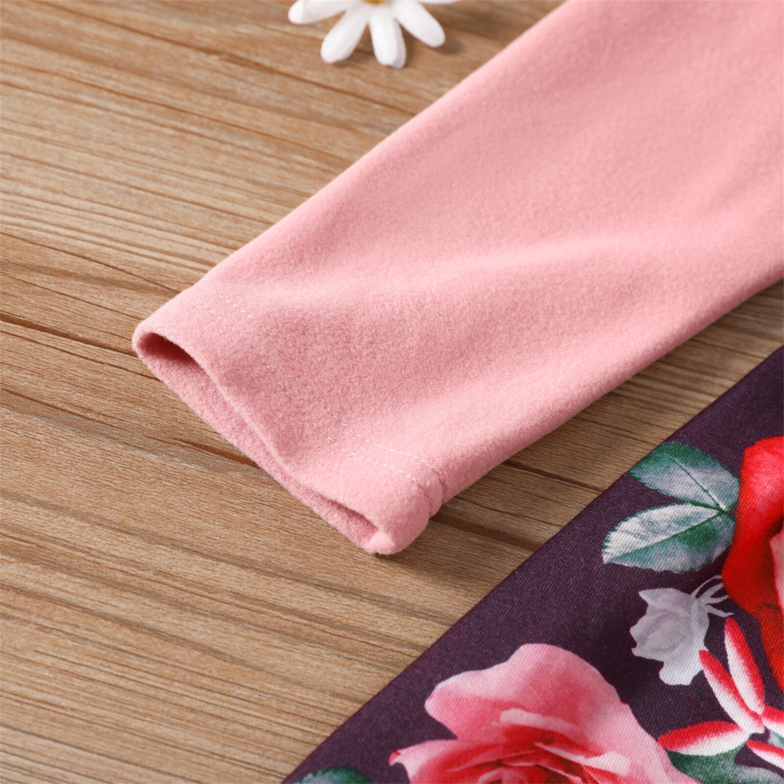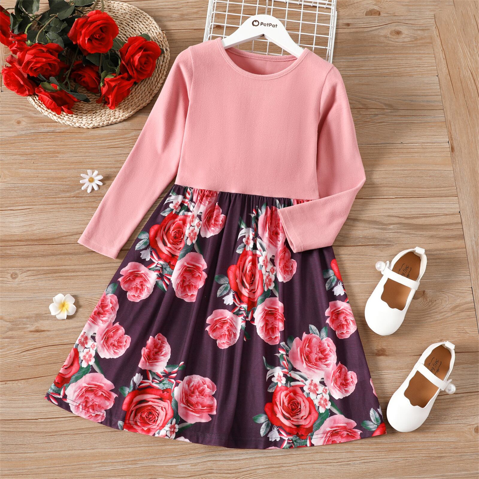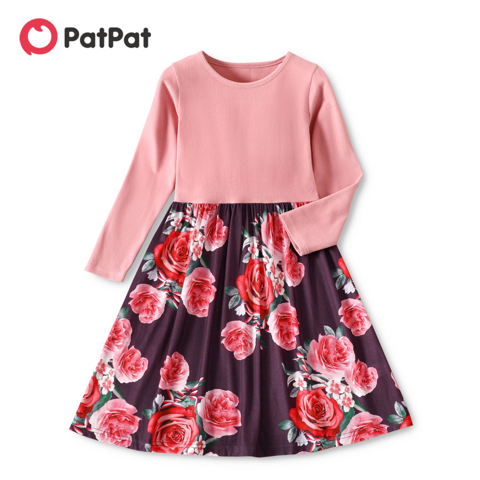 新作 PatPat Kid Girl ファジーフローラルプリントスプライス長袖ドレス