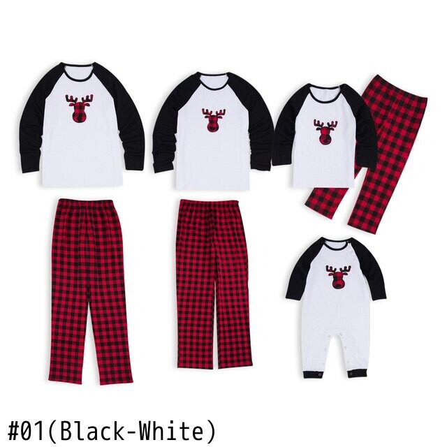 新作 PatPat クリスマス チェック柄 鹿プリント 家族お揃いパジャマセット (防炎)