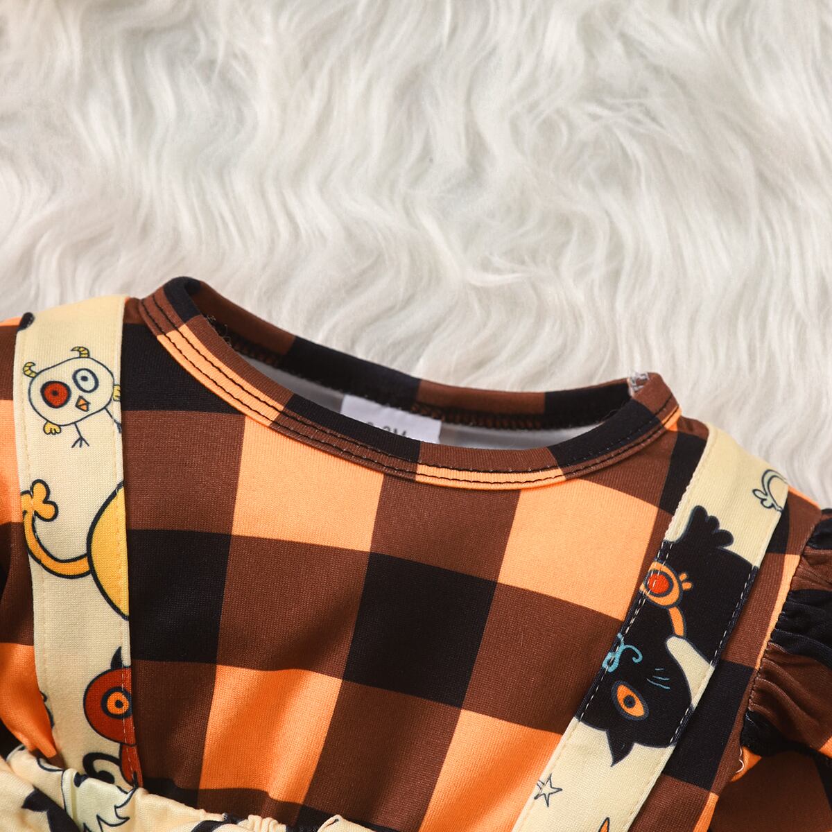 新作 PatPat s 2ピース 女の赤ちゃん チェック柄 長袖 スプライシング 全体プリント フリル ロンパース ヘッドバンド付き 服セット
