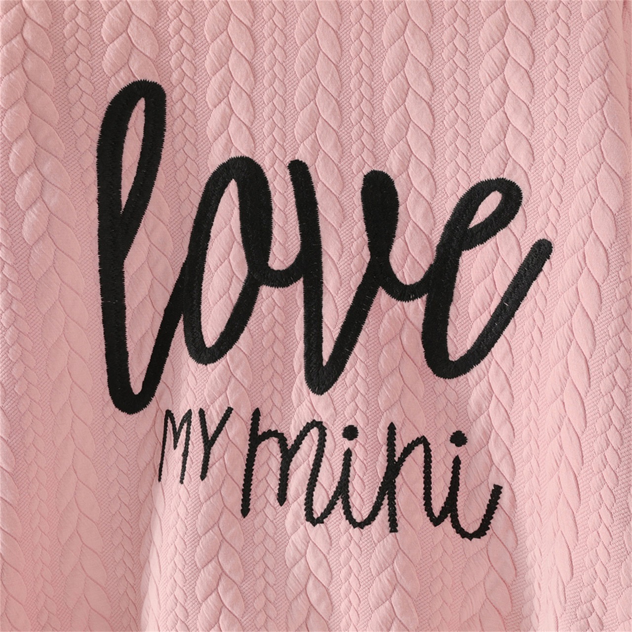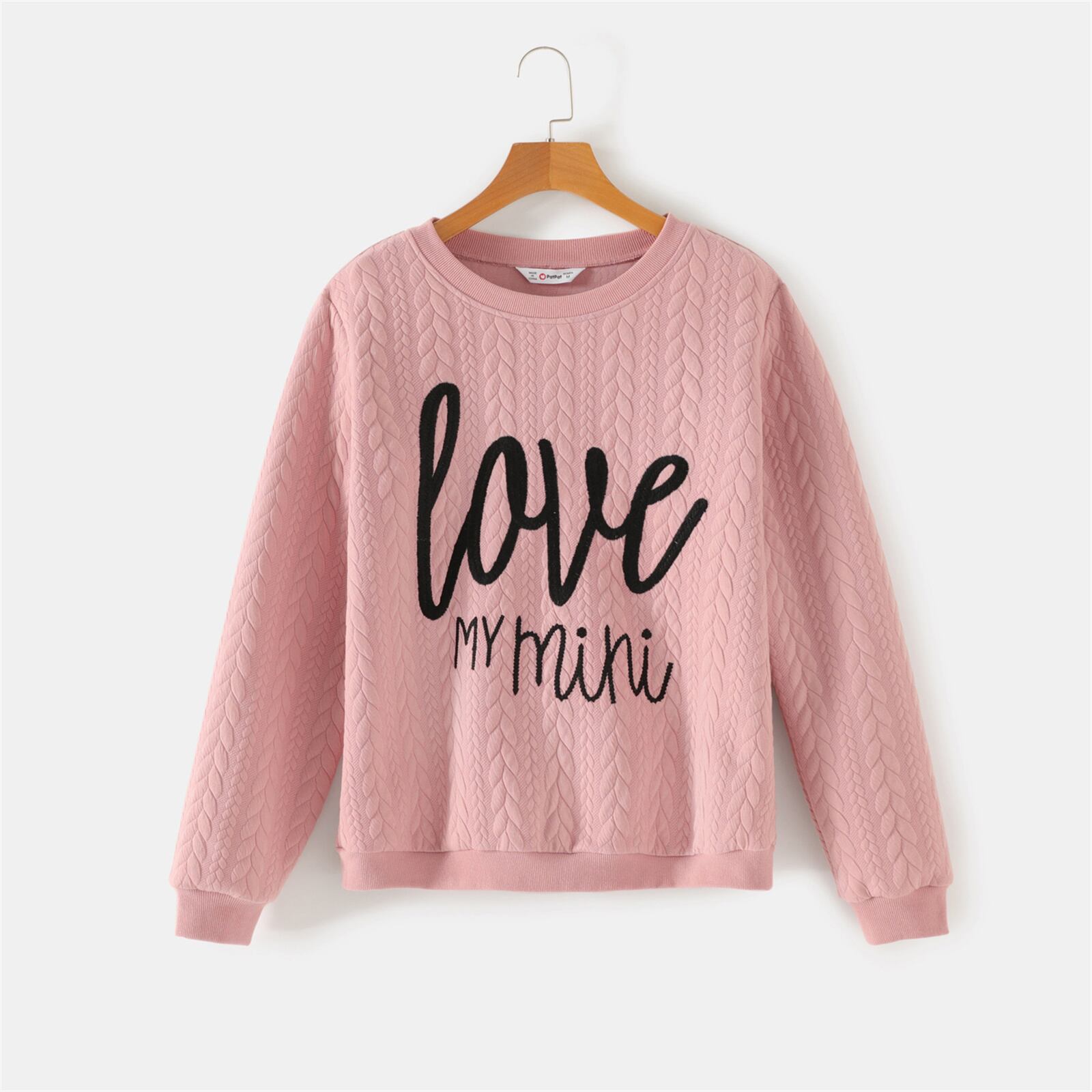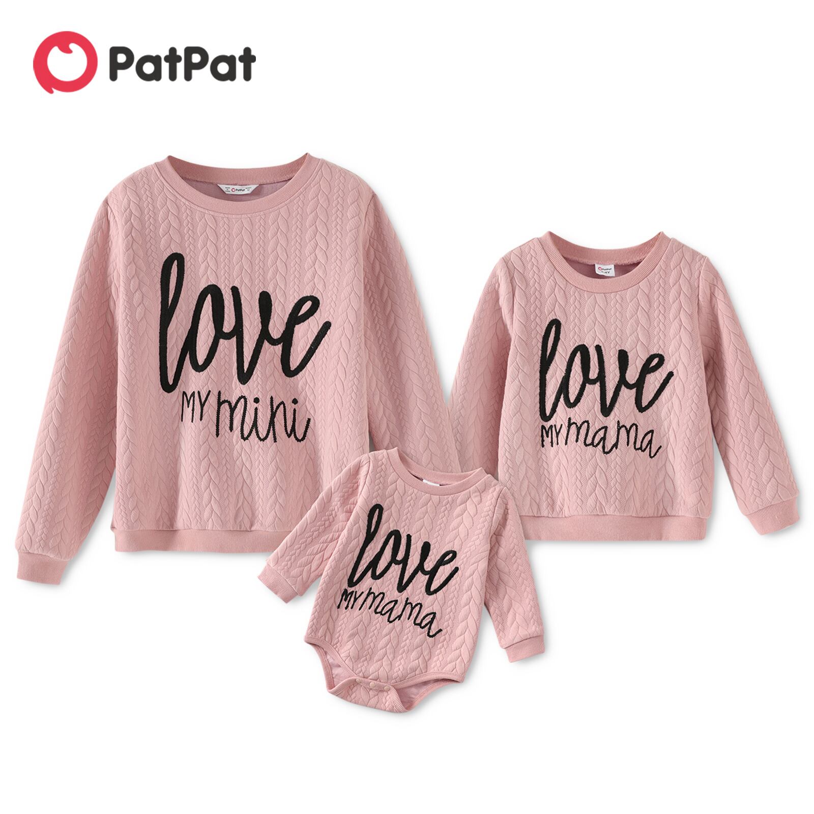 新作 パットパット 文字刺繍 ピンク テクスチャード ロングスリーブ プルオーバー ママと私