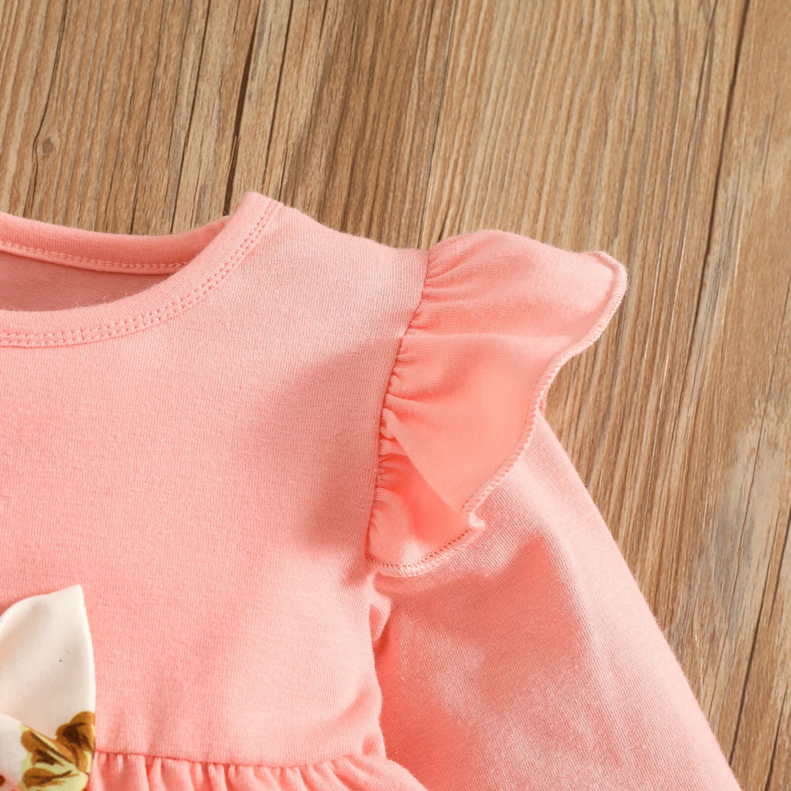 新作 PatPat 2pcs ベビー ダーク グリーン コットン ロングスリーブ ちょう結び トップと全面葉プリント パンツセット