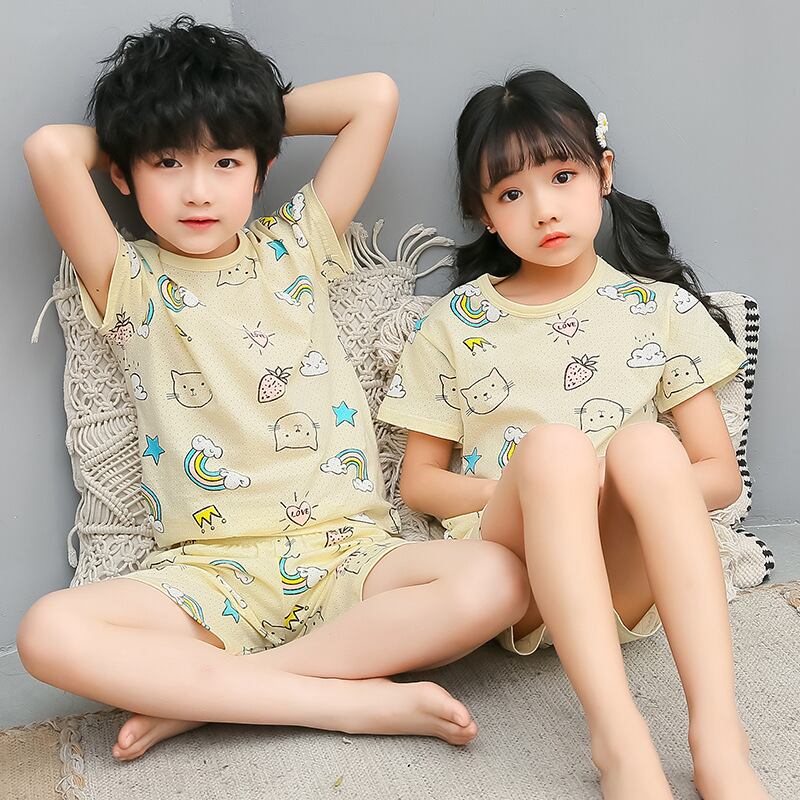 新作 キッズボーイズパジャマ女の赤ちゃん夏パジャマセット子供ホームウェアパジャマ少年パジャマ子供ナイトウェア 3-11Y 十代の服