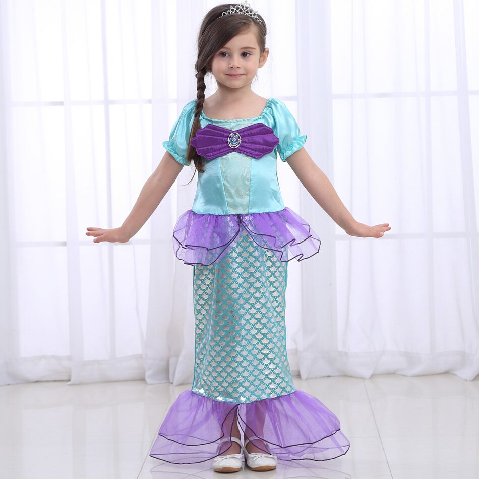 新作 マーメイドドレス女の赤ちゃんアリエル夜会服キッズコスプレガール誕生日パーティークリスマス 2-10 年