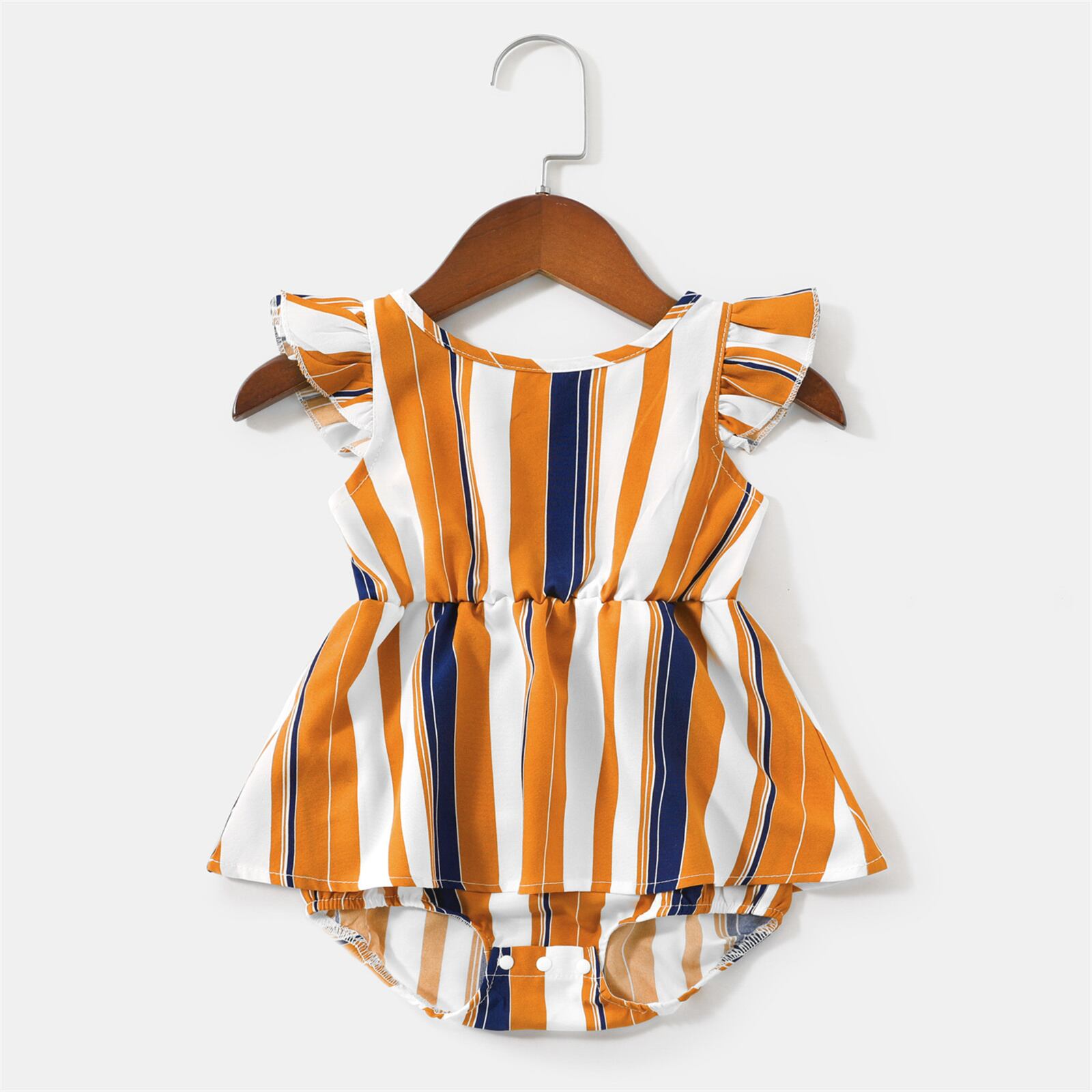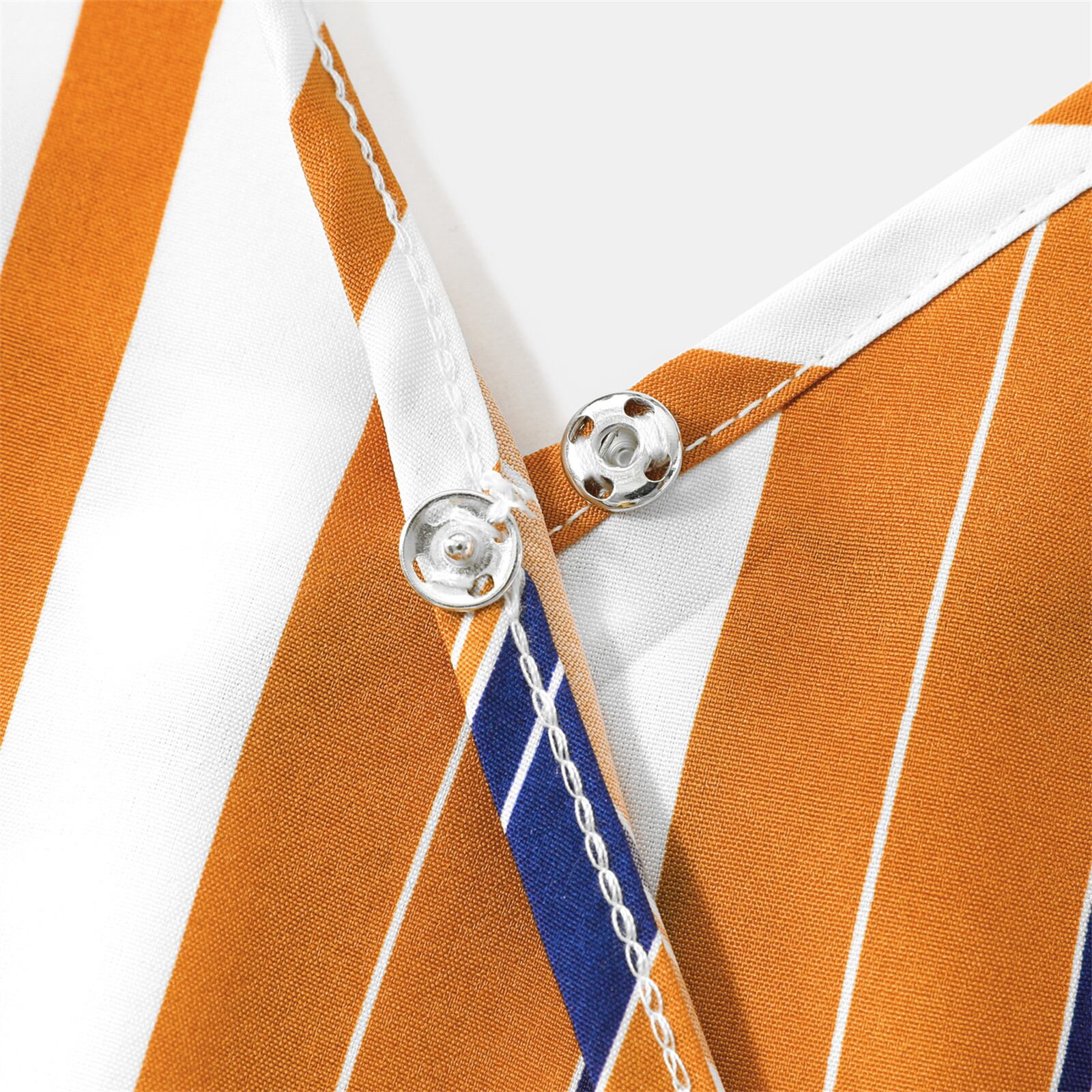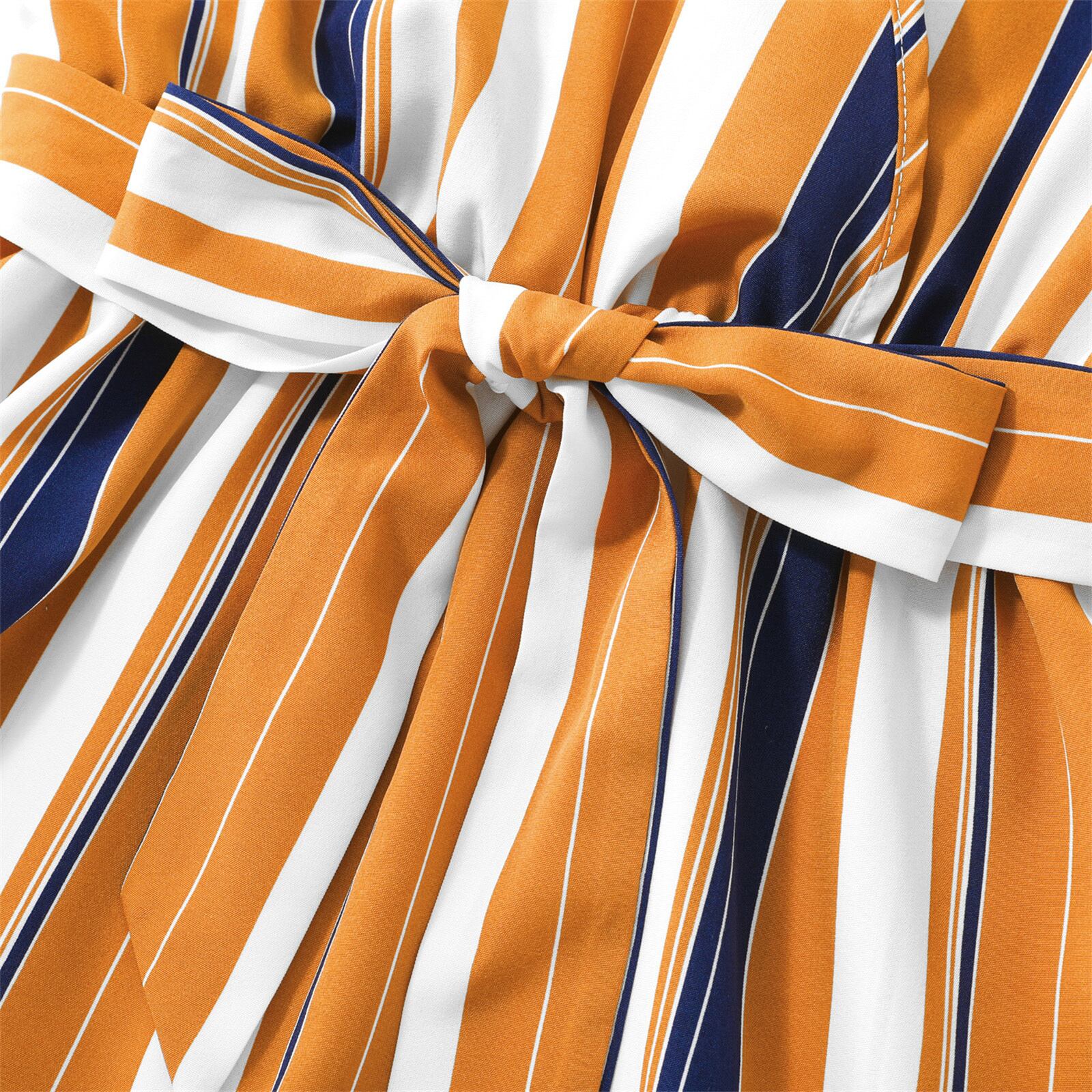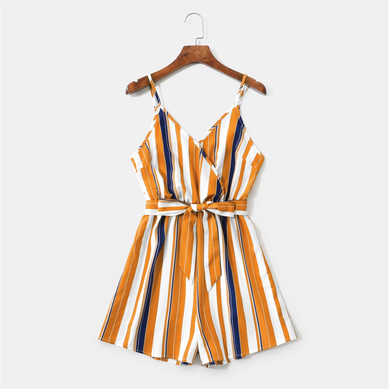 新作 PatPat イエロー ストライプ V ネック ノースリーブ スパゲッティ ストラップ ベルト付き ロンパース ママと私