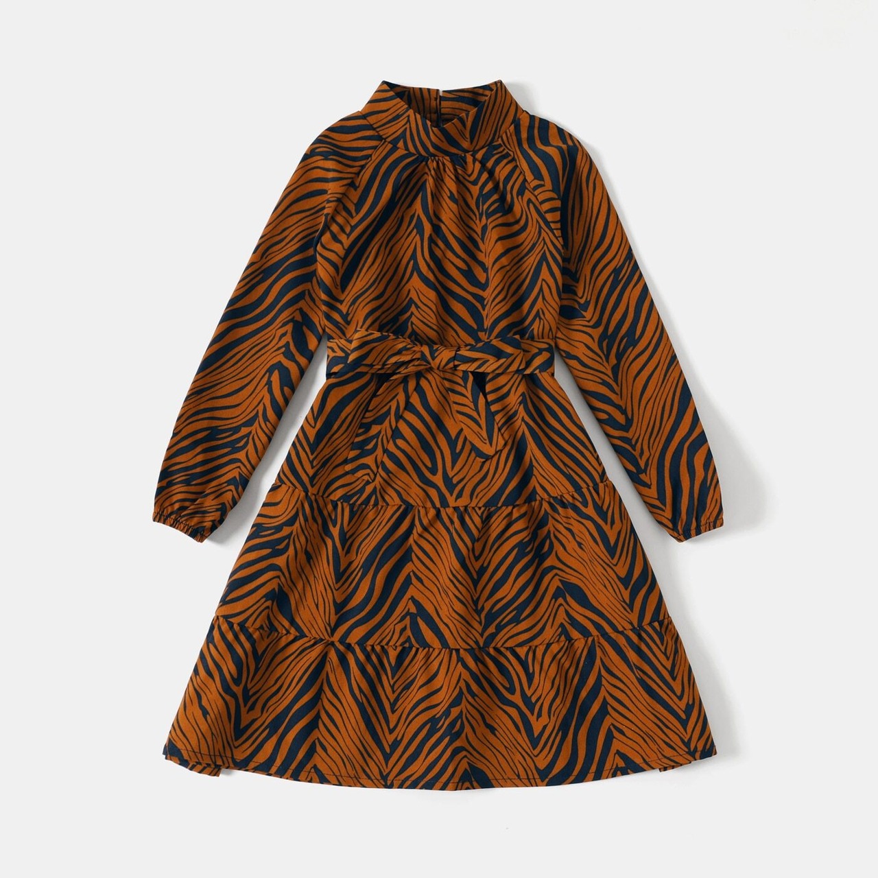 新作 PatPat ファミリーマッチング衣装 カップルセット オールオーバーフローラルプリント ロングスリーブベルト付きドレスとカラーブロックTシャツセット