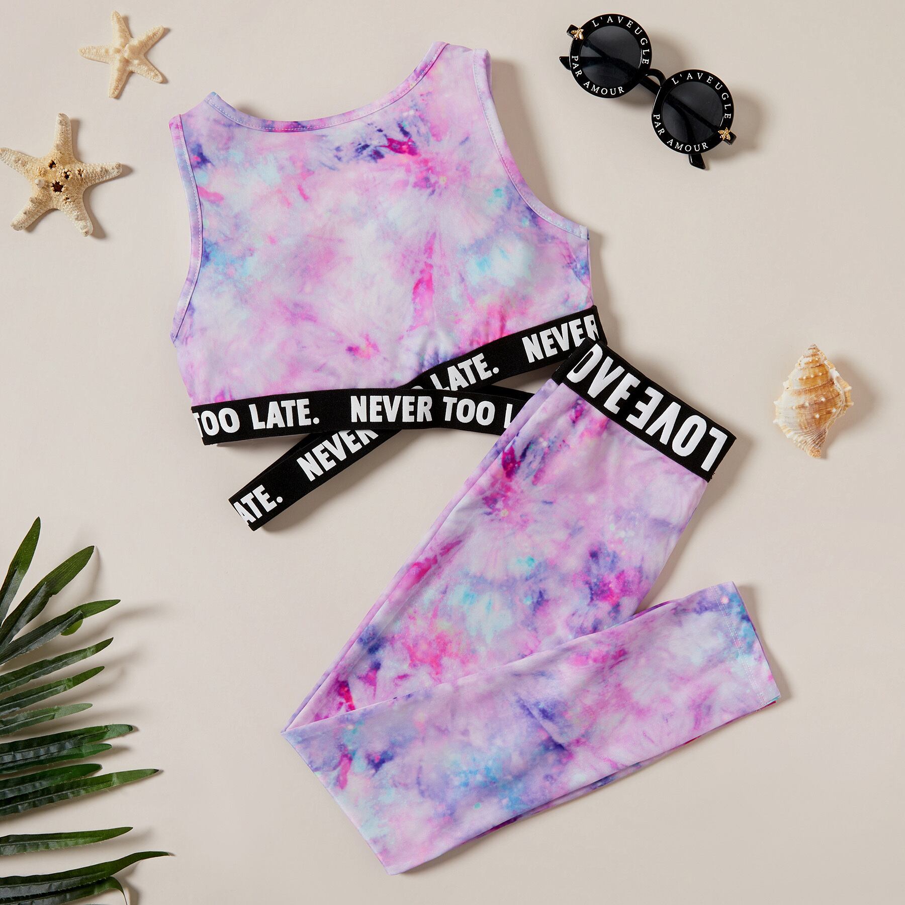 新作 PatPat サマーキッドガールセットタイダイレターデコレーションタンクトップ2ピーススーツガール4-9歳