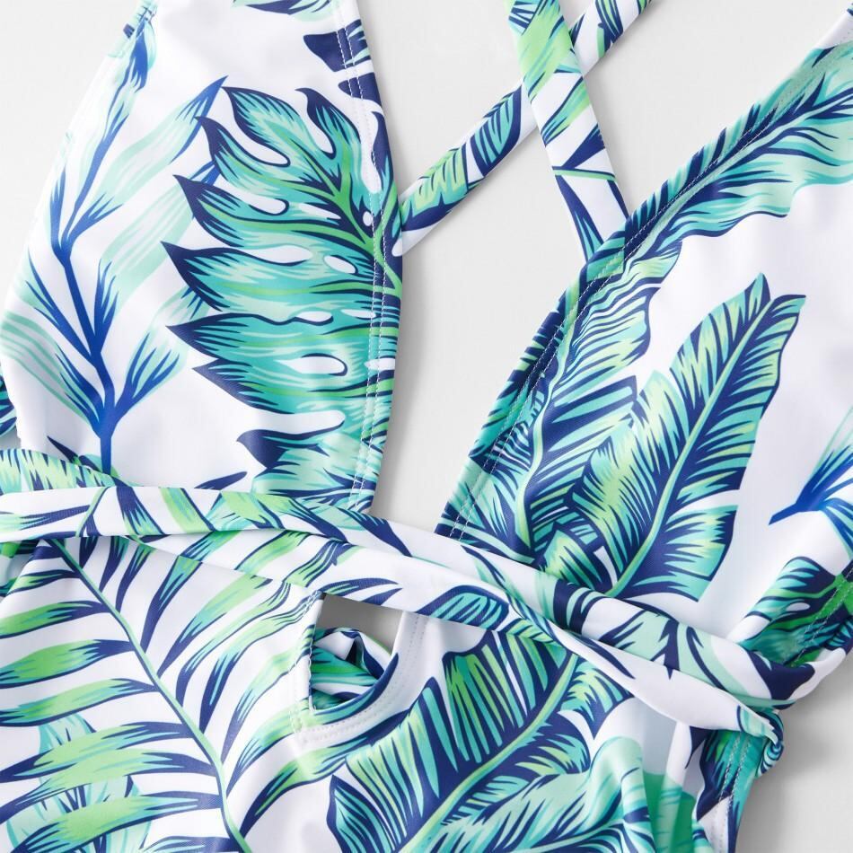 新作 PatPatおしゃれなリーフプリントお揃い水着ファミリールック花柄フルプリントマルチカラーワンピースお揃い水着