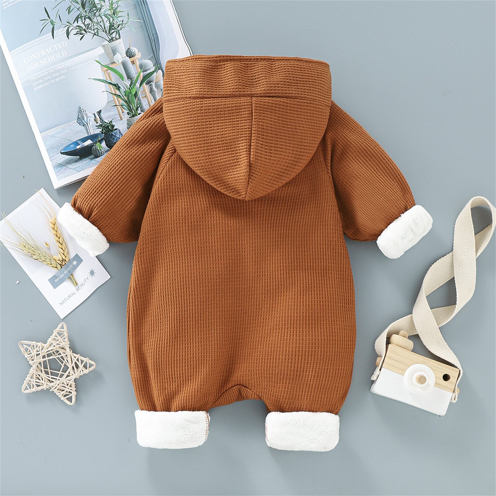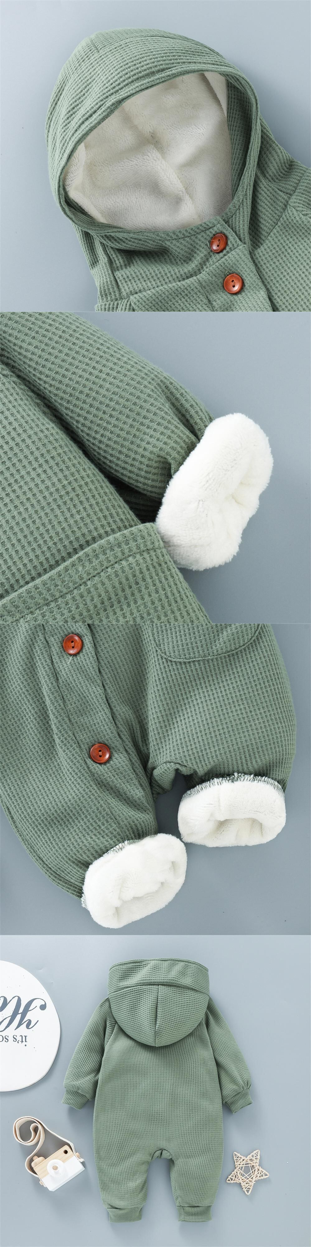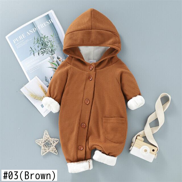 新作 PatPat ベビー 厚みのあるフリース裏地付き 無地 長袖 フード付き ワッフル ジャンプスーツ