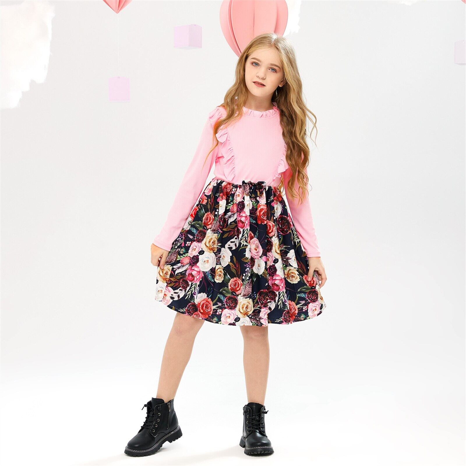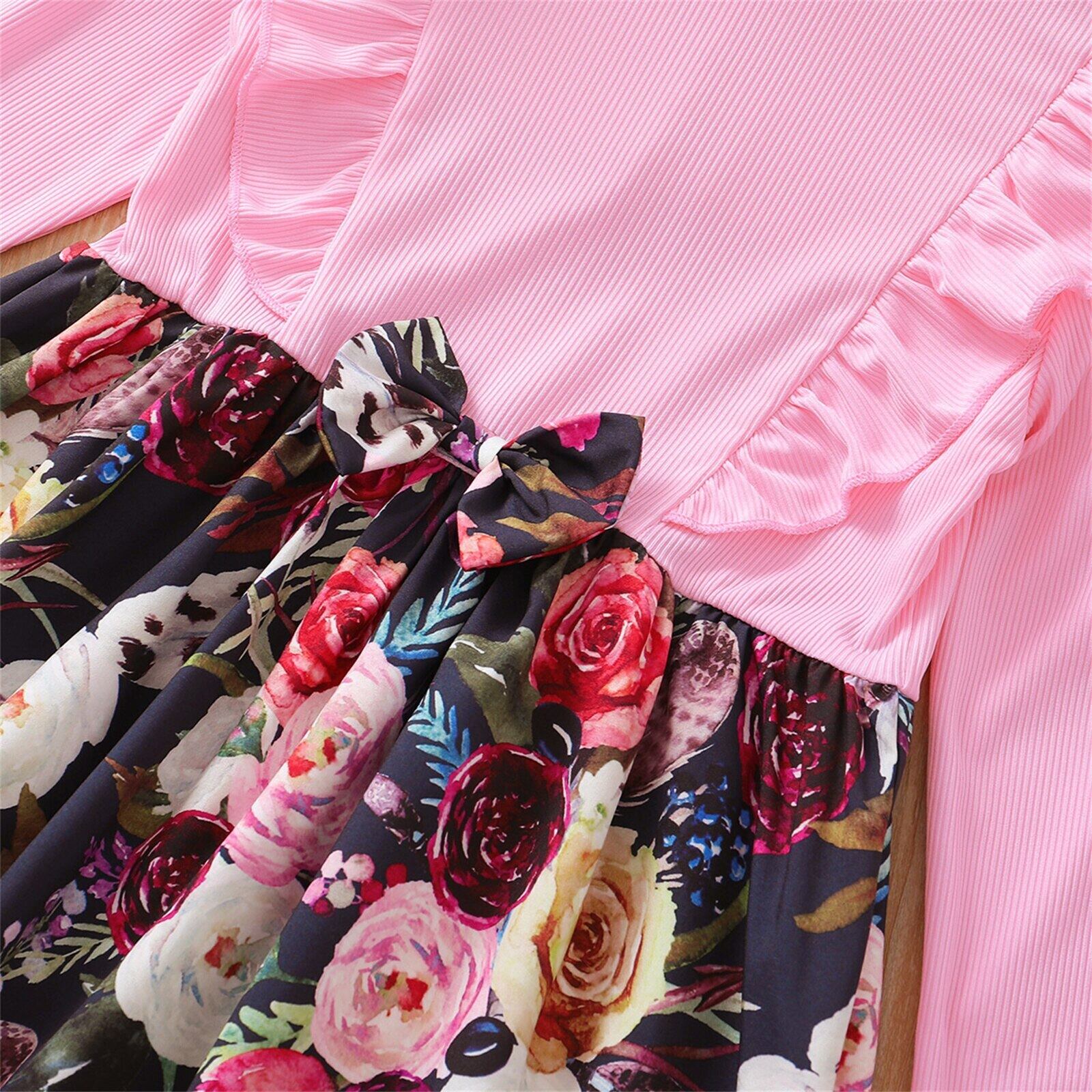 新作 PatPat Kid Girl フリルカラーちょう結び花柄スプライス長袖ドレス