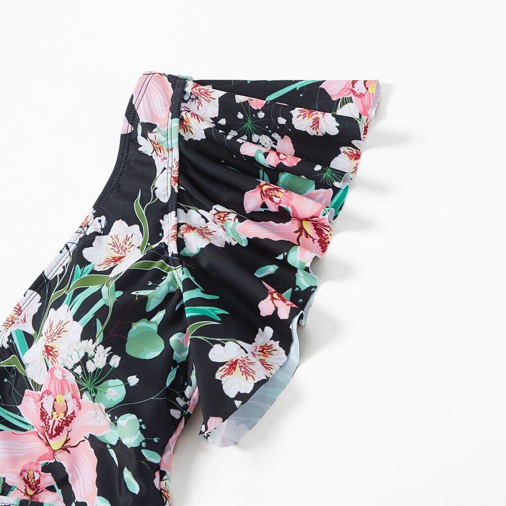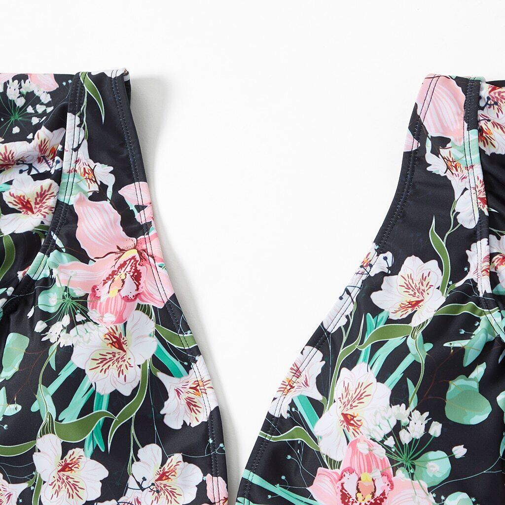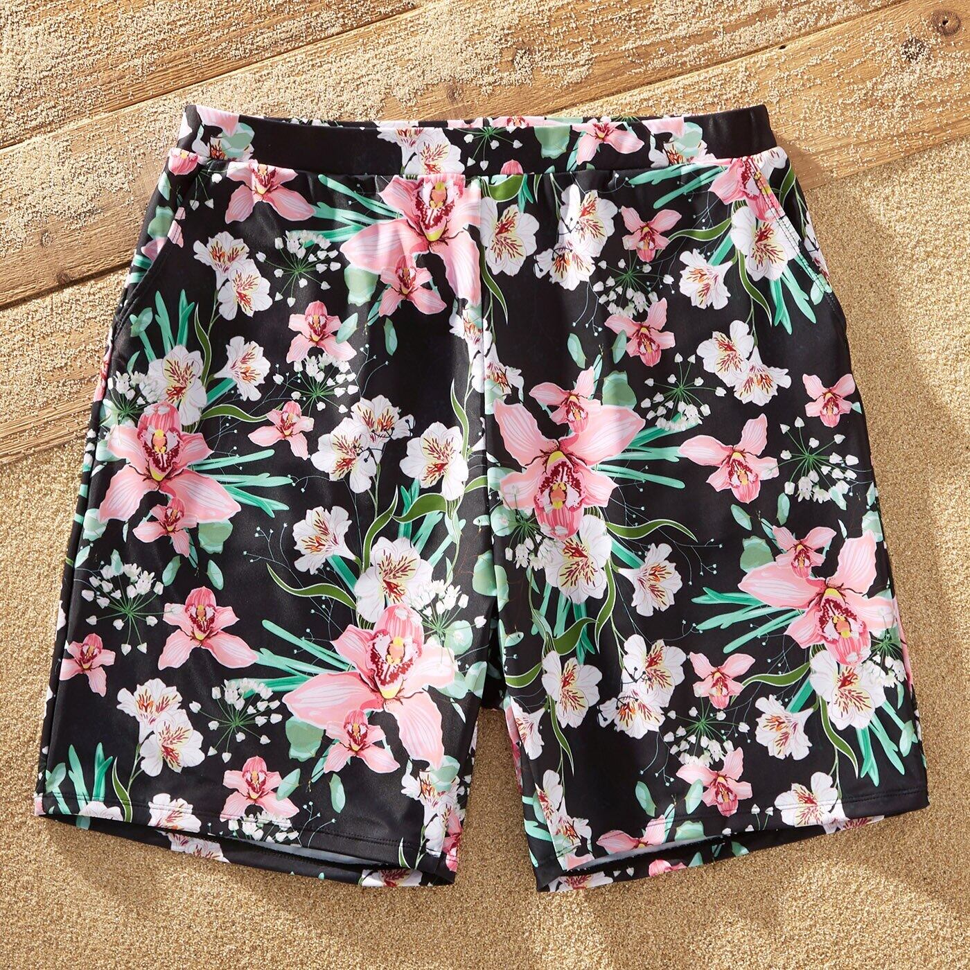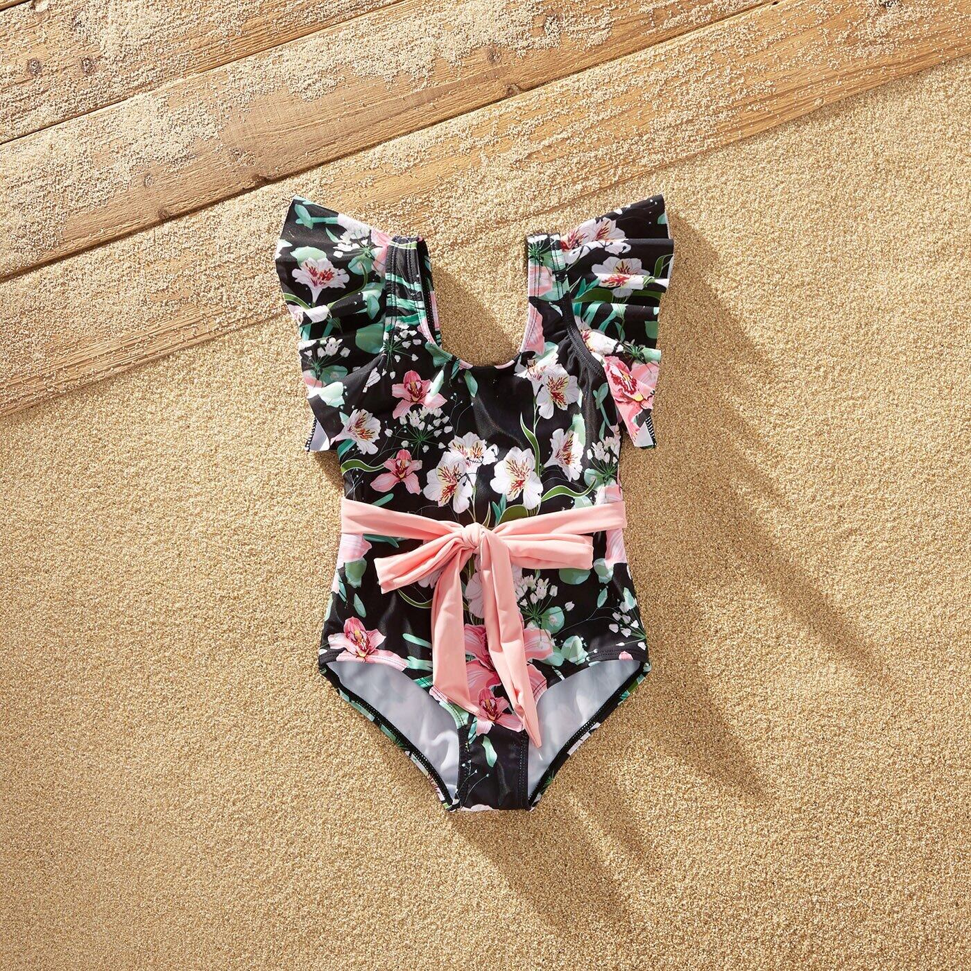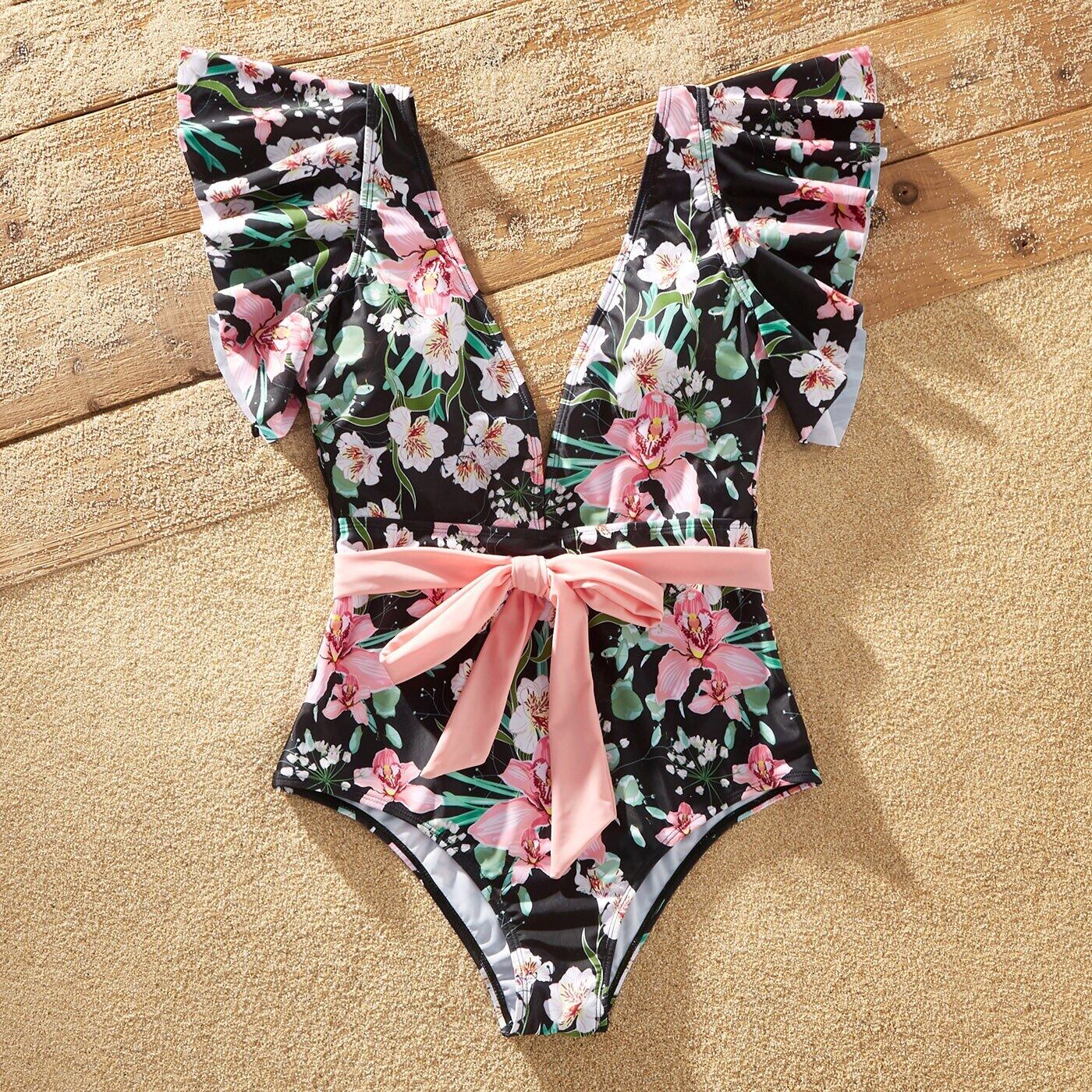 新作 PatPat フローラル プリント ファミリー マッチング水着 (ピンク ウエスト タイ ワンピース水着 ママと女の子の水着 お父さんと男の子)