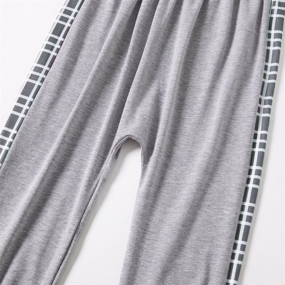 新作 PatPat 2 ピース キッド ボーイ レター プリント チェック柄 パーカー スウェットシャツと伸縮性のあるパンツ グレー セット