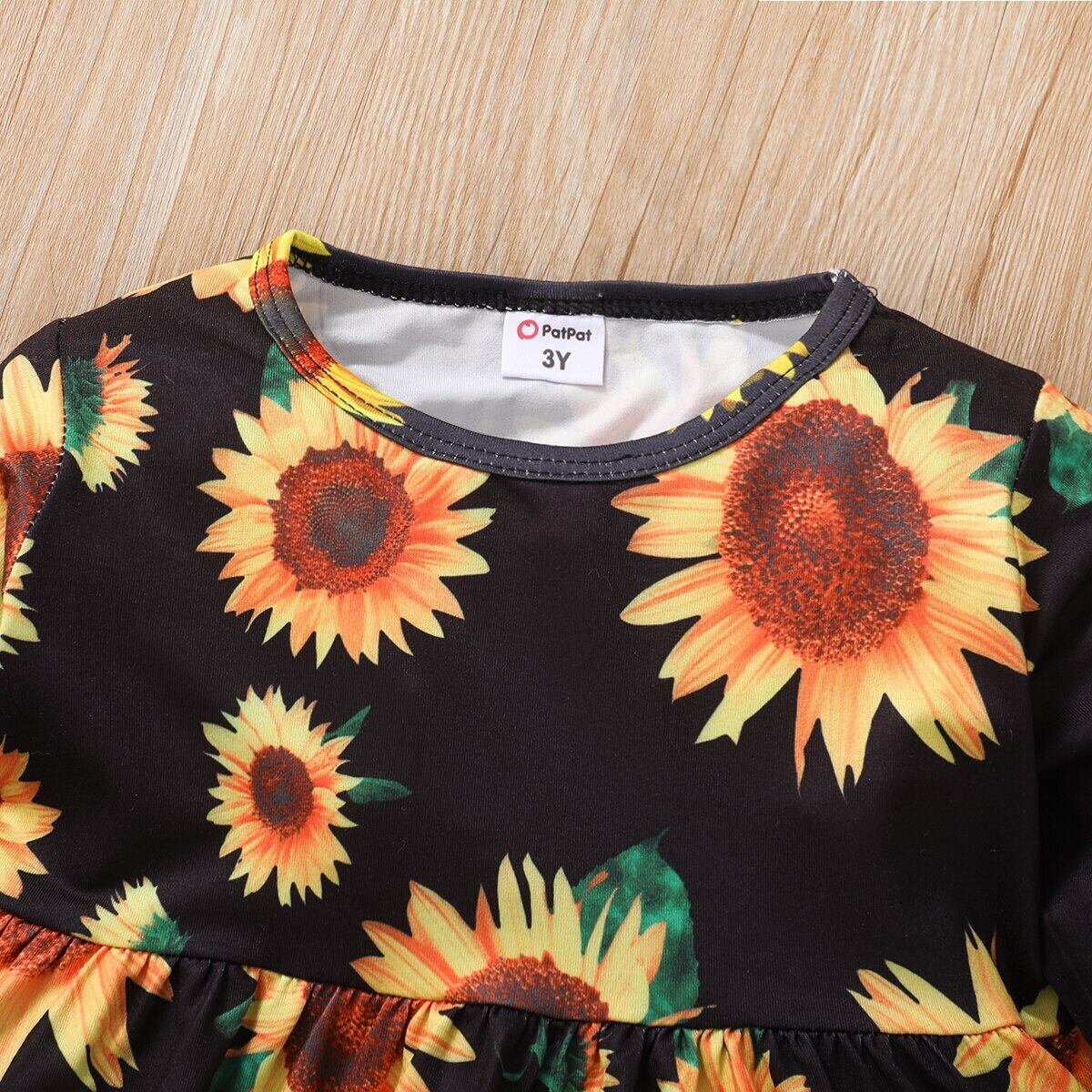 新作 PatPat 3 ピース トドラー ガール フローラル プリント ロングスリーブ トップ、パッチワーク リップド デニム ジーンズ、ヘッドバンド セット