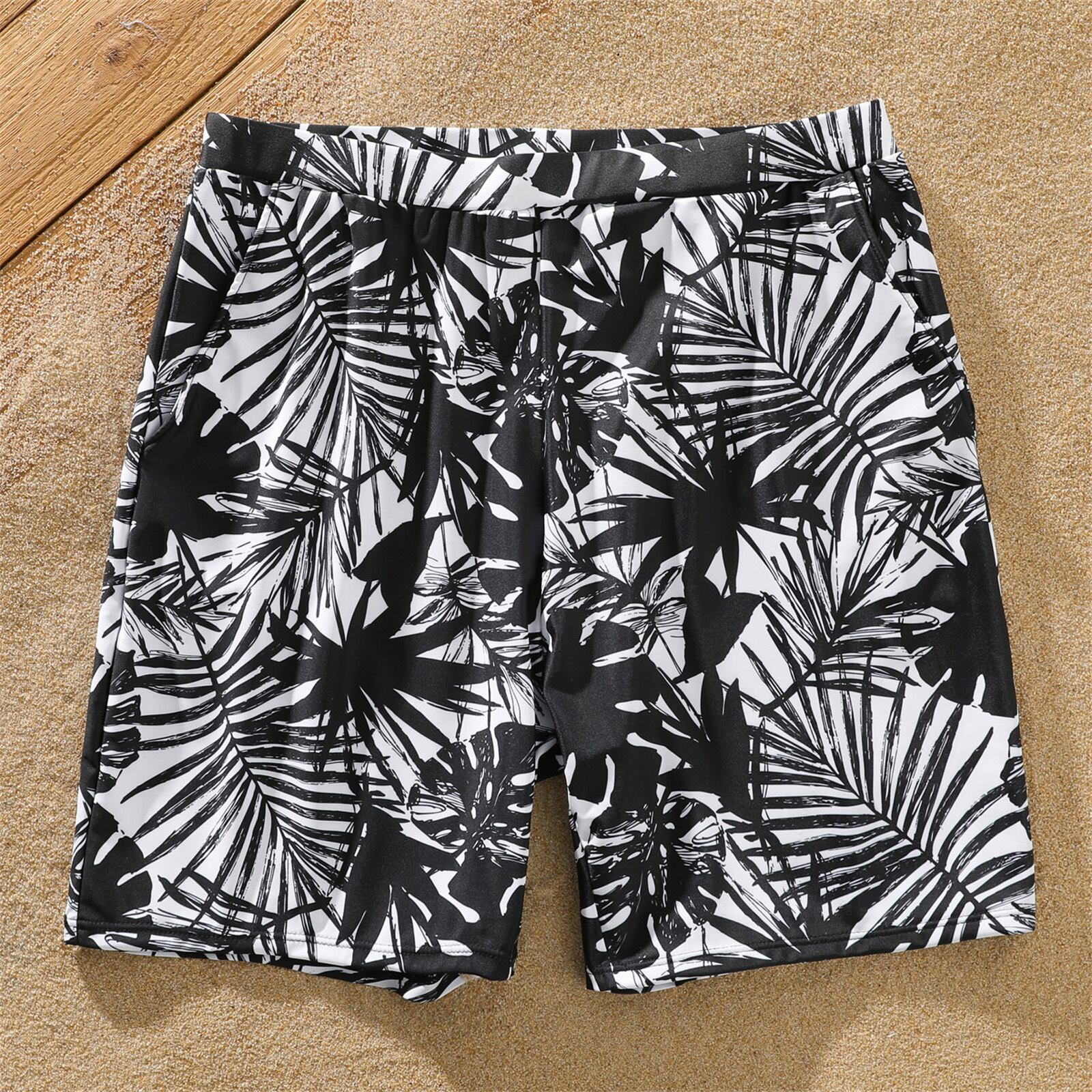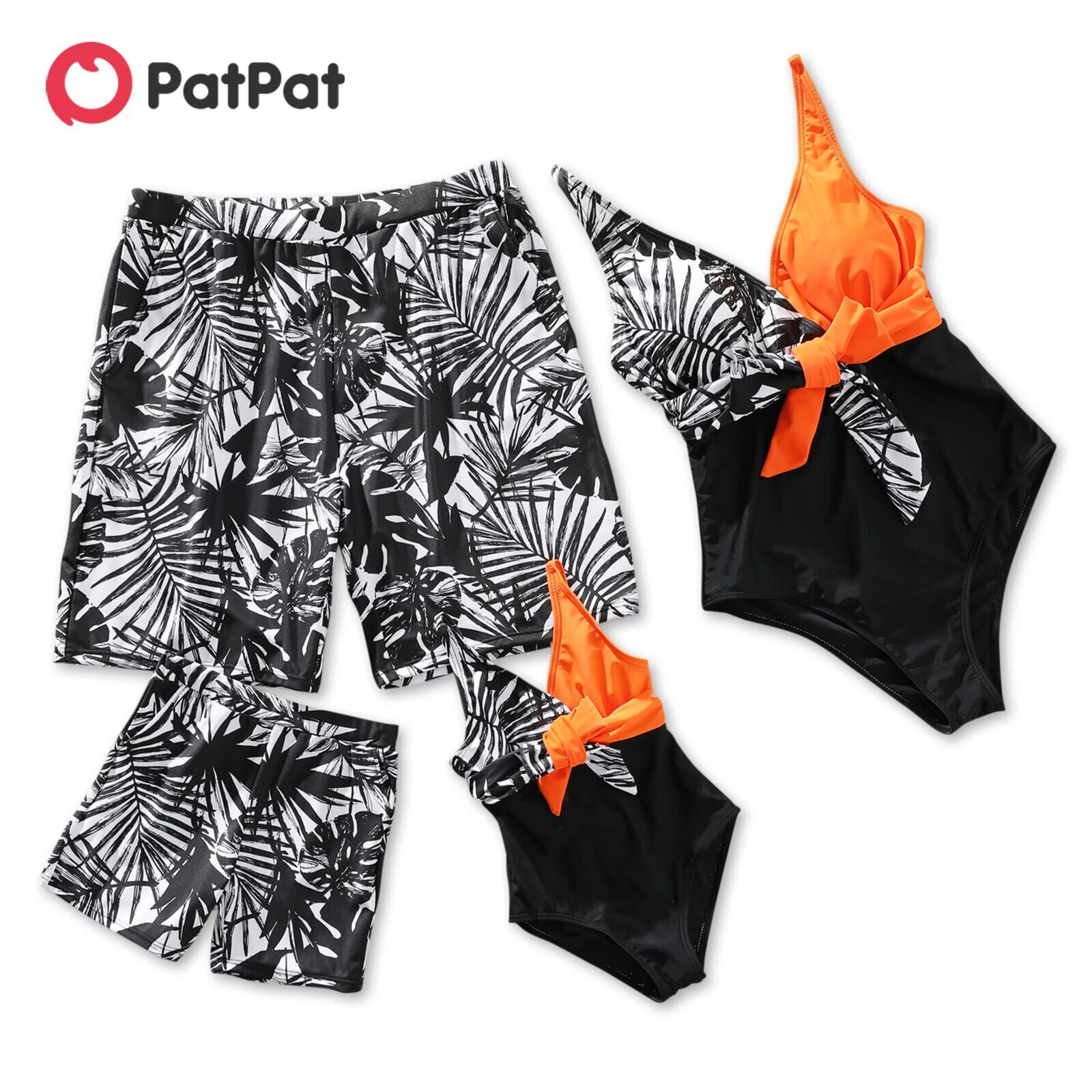 新作 PatPat ファミリー マッチング オールオーバー プラント プリント スイム トランクス ショーツとカラーブロック スパゲッティ ストラップ ワンピース水着