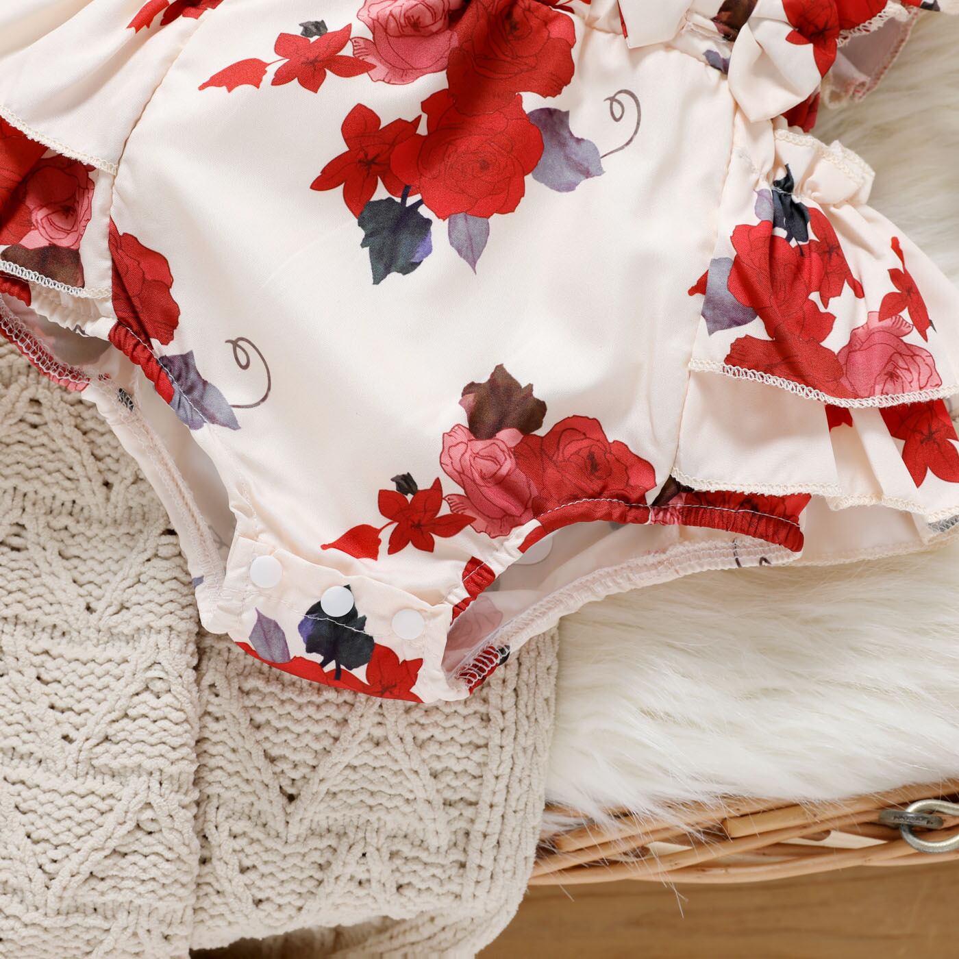 新作 PatPat 2ピース ベビーガール ノースリーブ フリル レッド フローラル レタープリント ロンパース ヘッドバンドセット付き