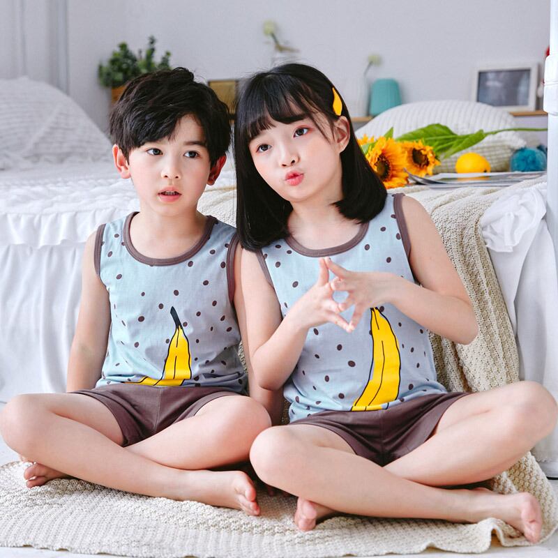 新作 キッズボーイズパジャマコットンノースリーブベストショーツパジャマセット女の子の夏の子供の漫画のスパースター