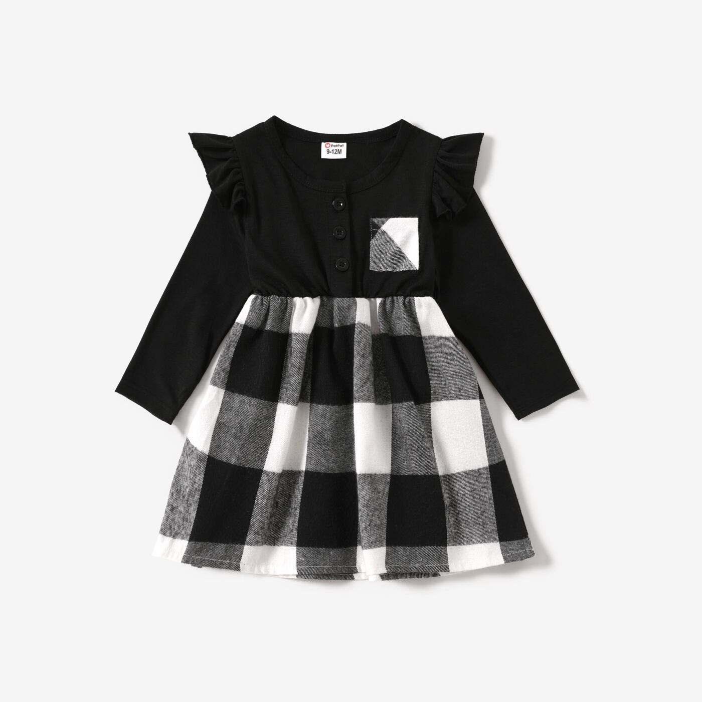 新作 PatPat ファミリーマッチングブラックチェック柄ロングスリーブスプライシングドレスとシャツセット