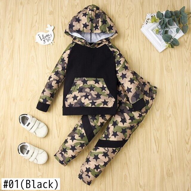新作 2 ピース ベビー/幼児迷彩五芒星長袖フード付きプルオーバーとパンツ セット