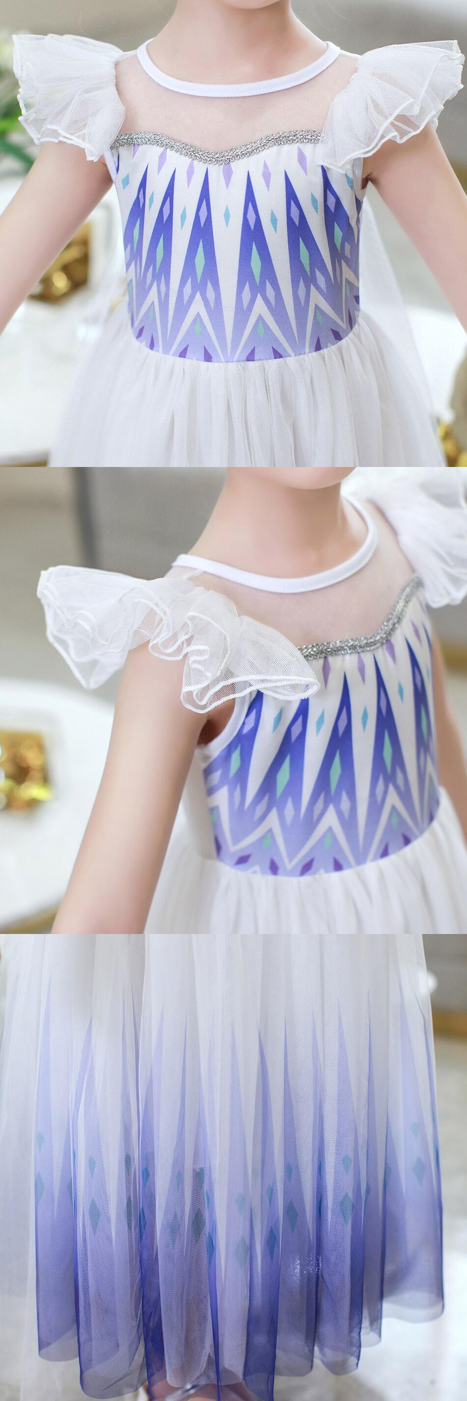 新作 パフスリーブホワイトエルザキッズウェディングパーティードレス女の子エルザ 2 雪の女王コスプレ衣装ガウン