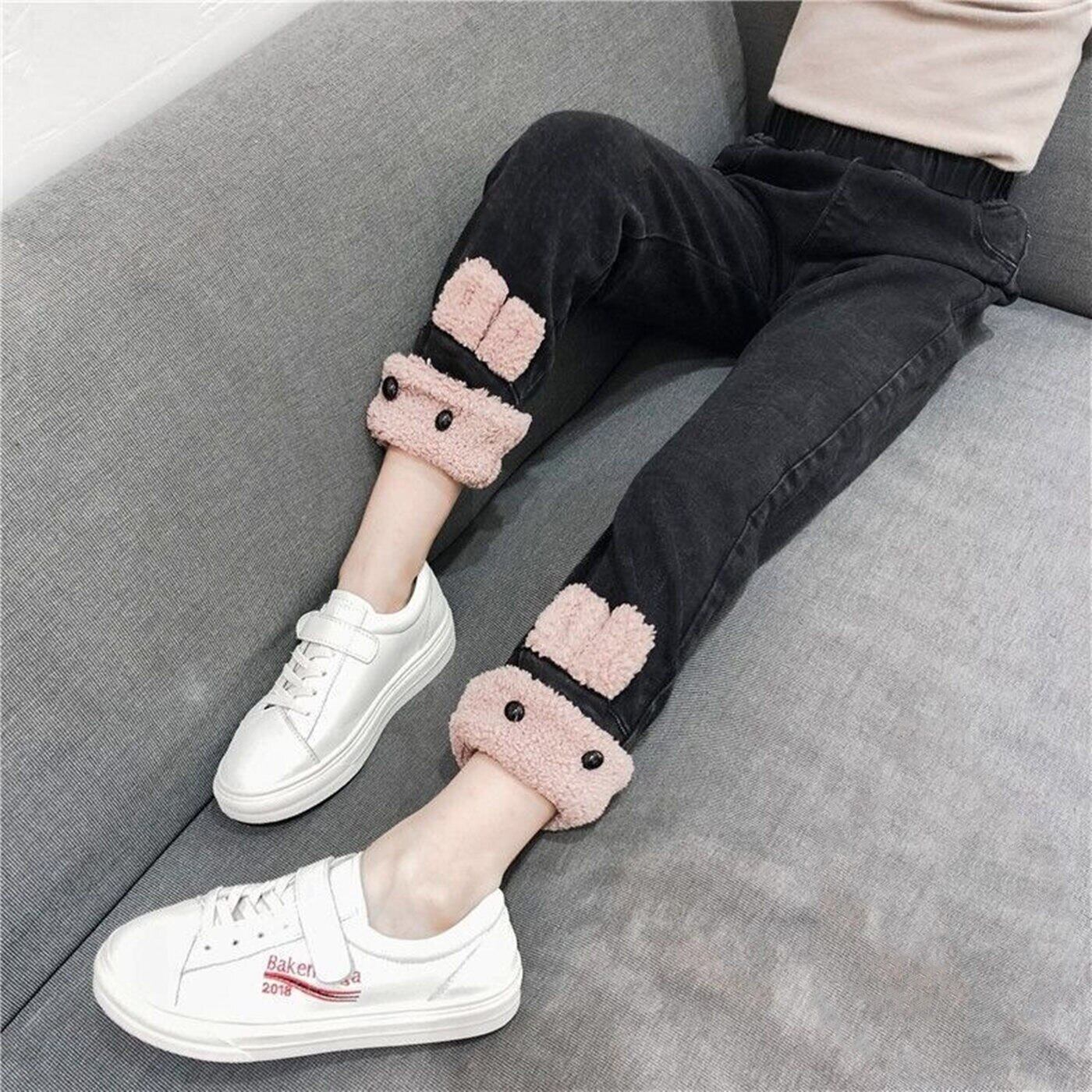 新作 PatPat Kid Girl コットン100% アニマル柄 ファジーカフス デニム ジーンズ