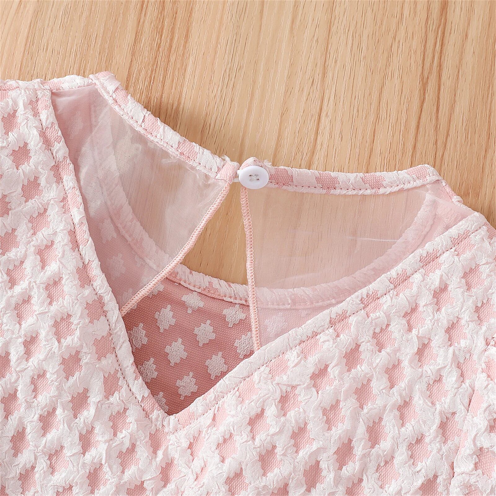 新作 PatPat Kid Girl メッシュ ちょう結び テクスチャード パフスリーブ ピンク ドレス