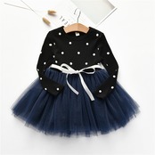 新作 PatPat トドラー 女の子 ポルカドット ベルト付き メッシュ スプライス ロングスリーブ ドレス