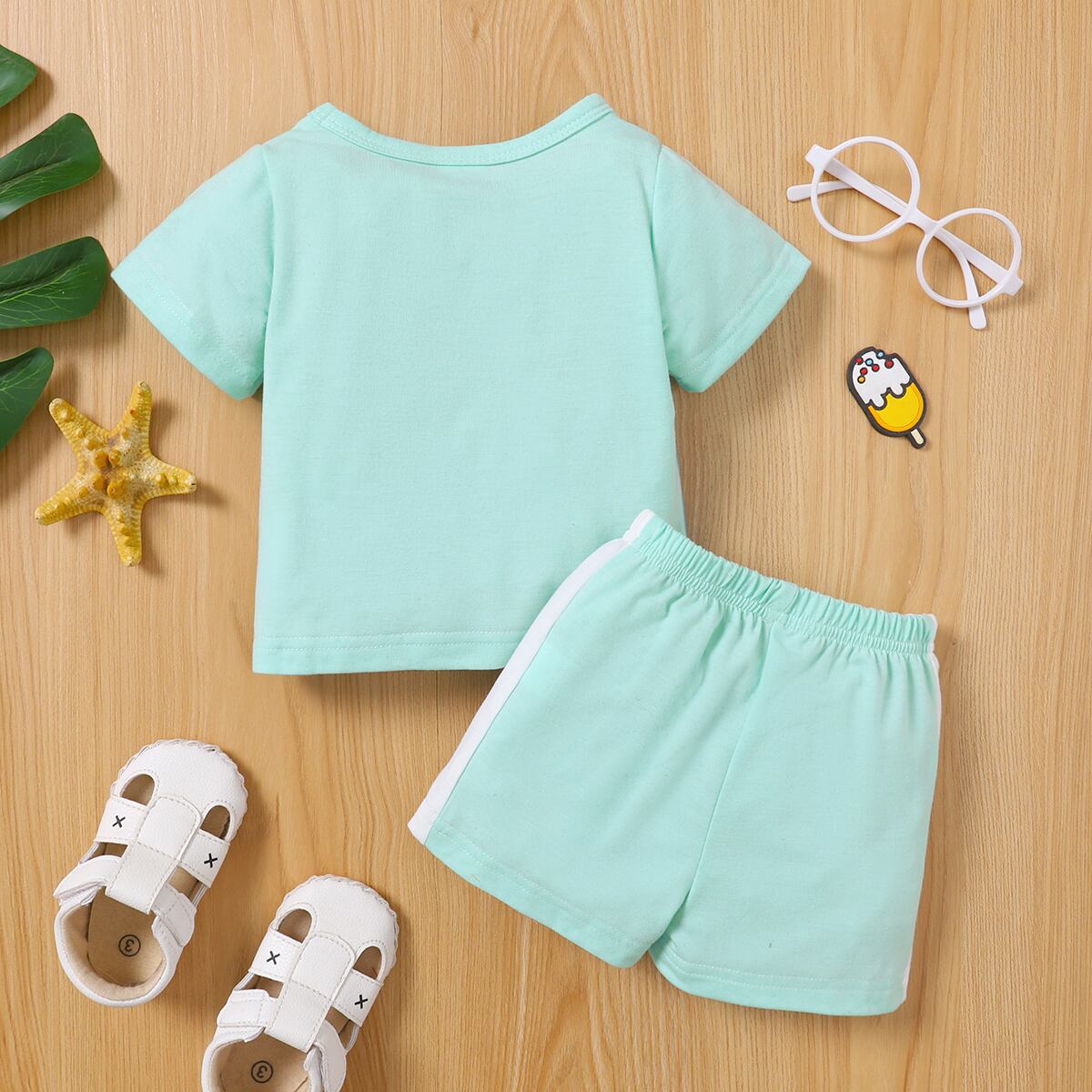 新作 PatPat 2ピース ベビーボーイ レタープリント カラーブロック スプライス 半袖Tシャツとショーツセット
