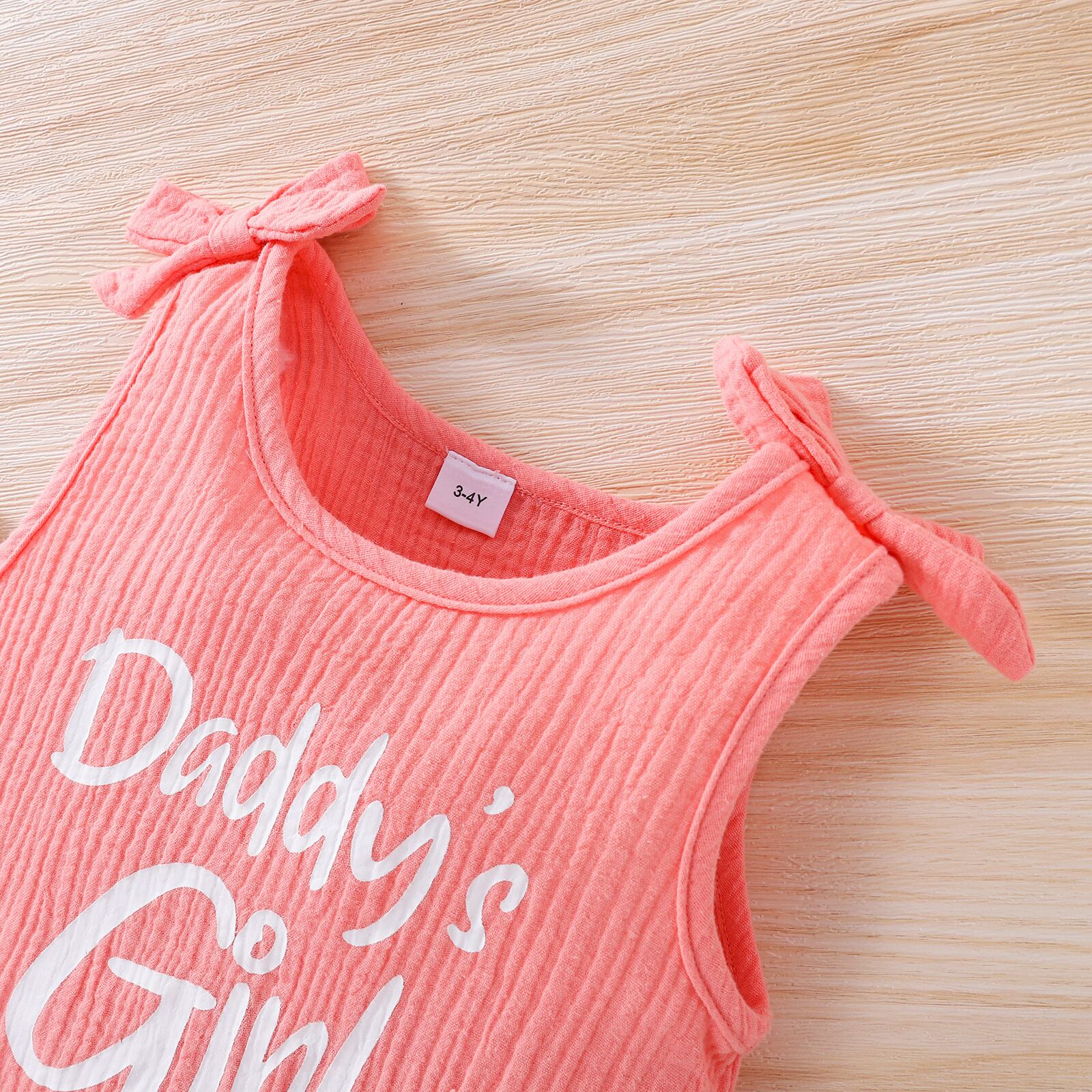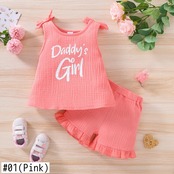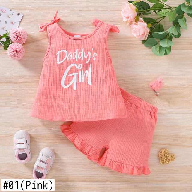 新作 PatPat 2ピース 幼児 女の子 綿100% レタープリント ちょう結び ノースリーブトップとフリルピンクショーツセット