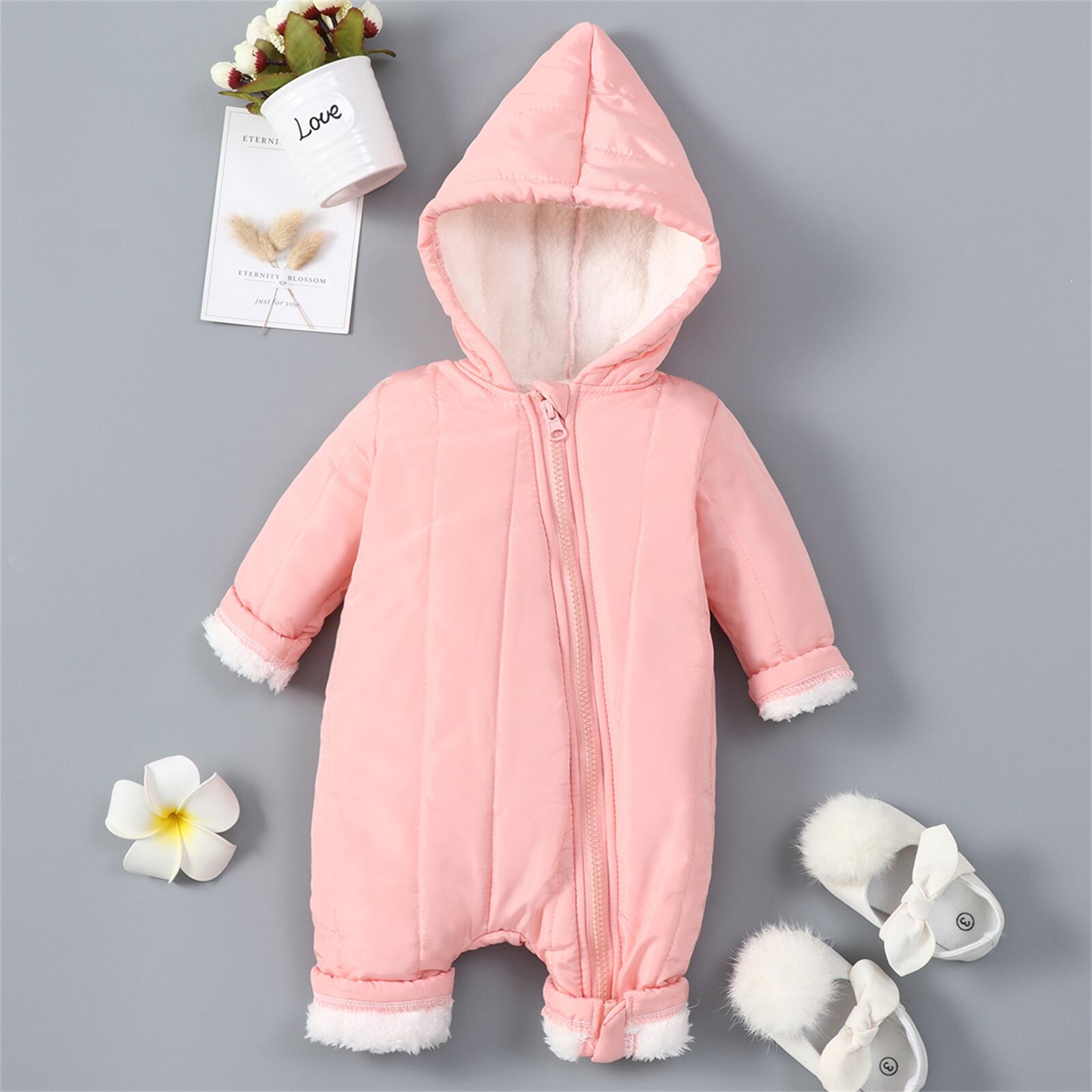 新作 PatPat ベビー 男の子/女の子 厚みのあるファジー フリース裏地 無地 長袖 フード付き ジップ ジャンプスーツ スノースーツ