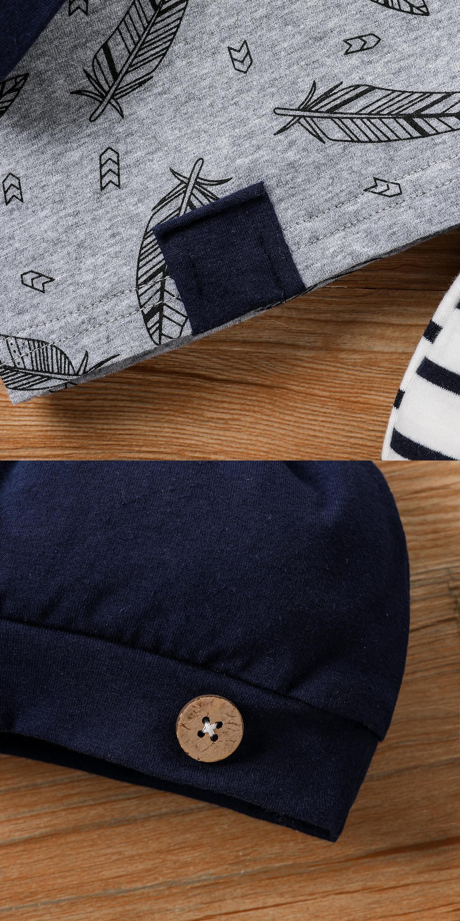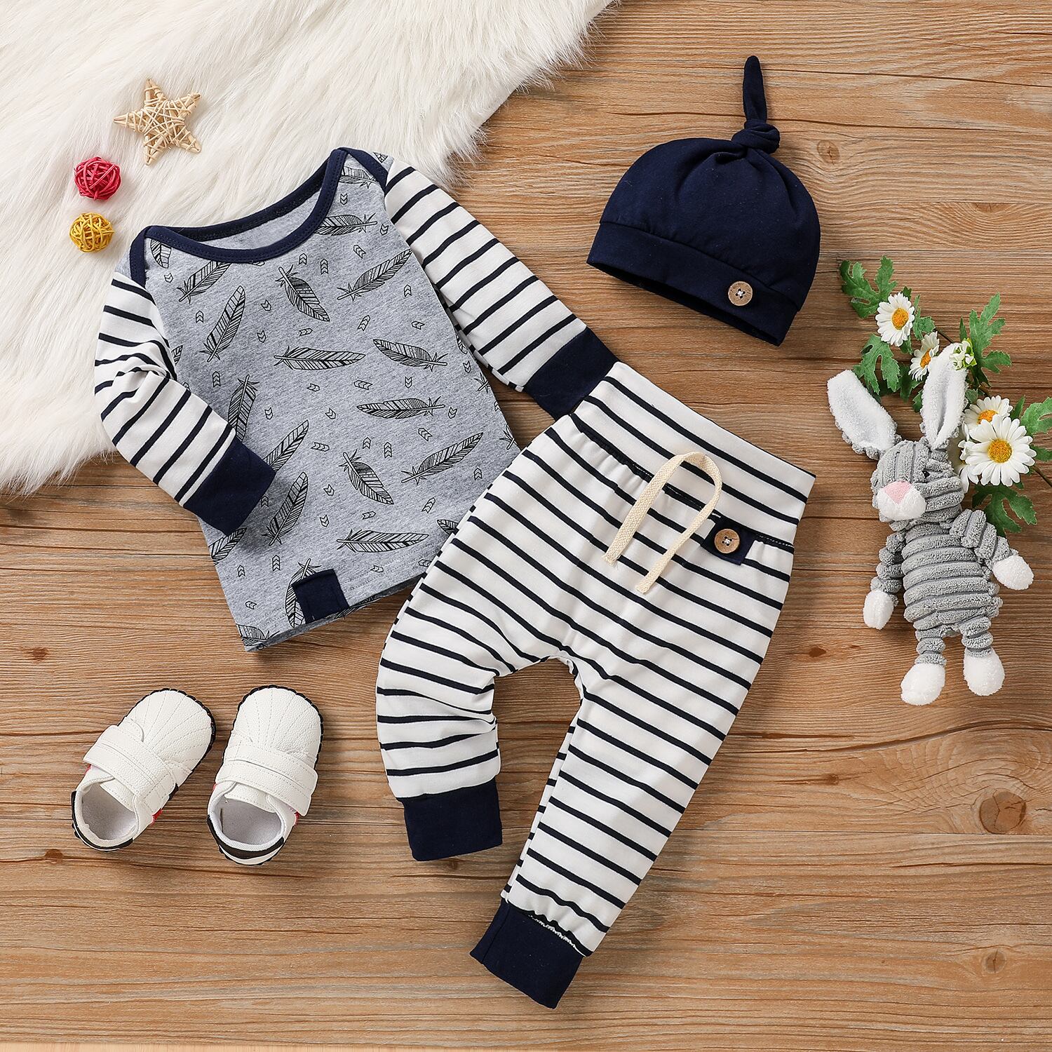 新作 PatPat 綿100% 3点 ストライプ&フェザープリント 長袖 ベビーセット