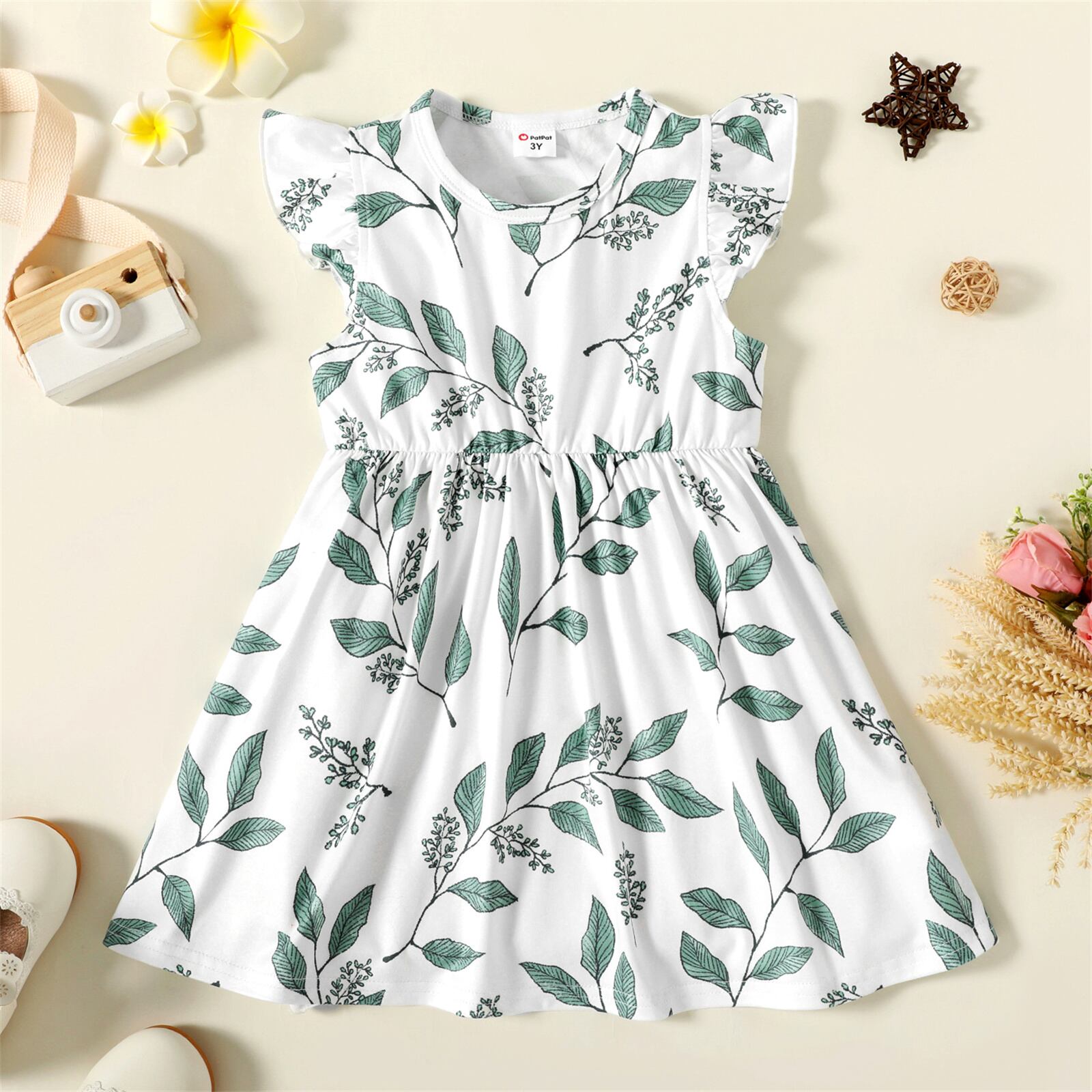 新作 PatPat トドラーガール フローラル リーフ プリント フラッタースリーブ ドレス
