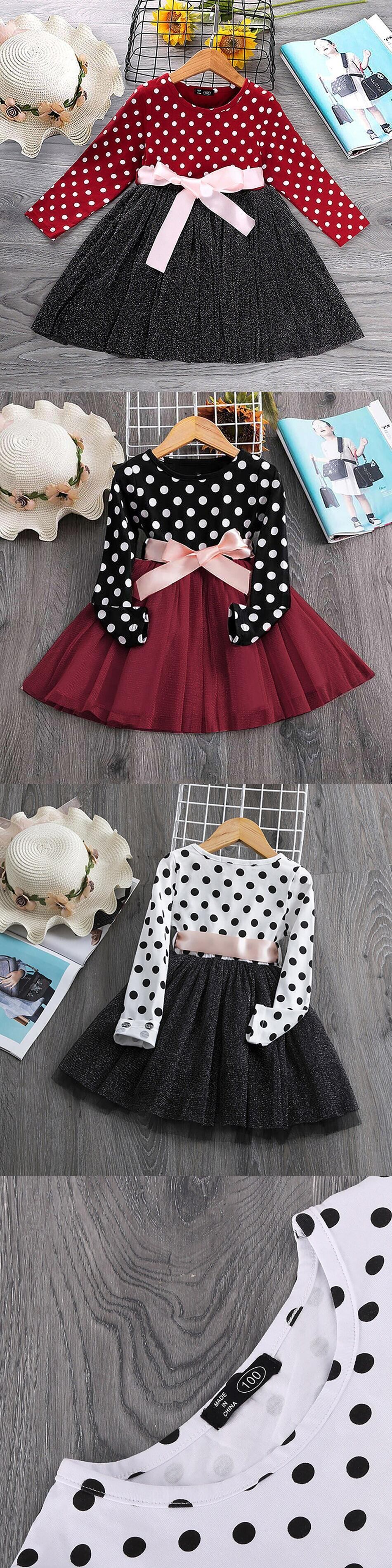 新作 長袖ドレスキッズガールズドット秋ベビー誕生日服冬の子供のパーティードレス 1-6T