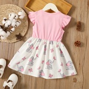 新作 PatPat 幼児 女の子 エレファント バタフライ プリント スプライス フリル フラッタースリーブ ドレス