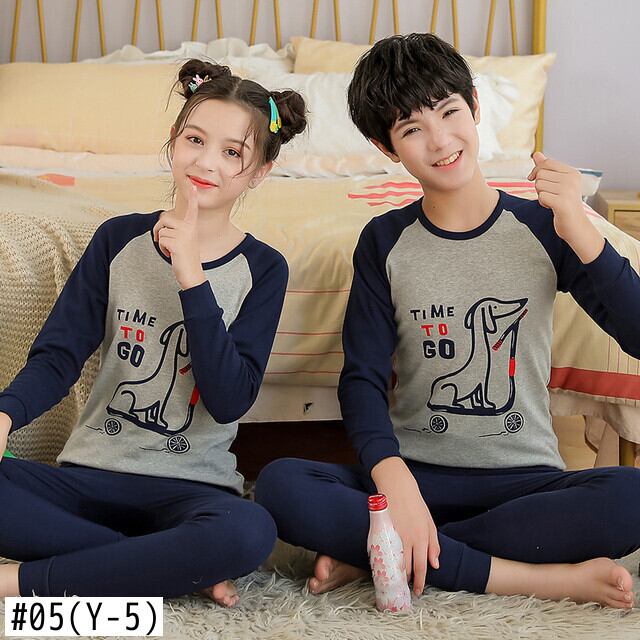 新作 コットン十代の女の子服 2 個子供のパジャマ Tシャツパンツセット冬長袖パジャマ子供パジャマ 9-18