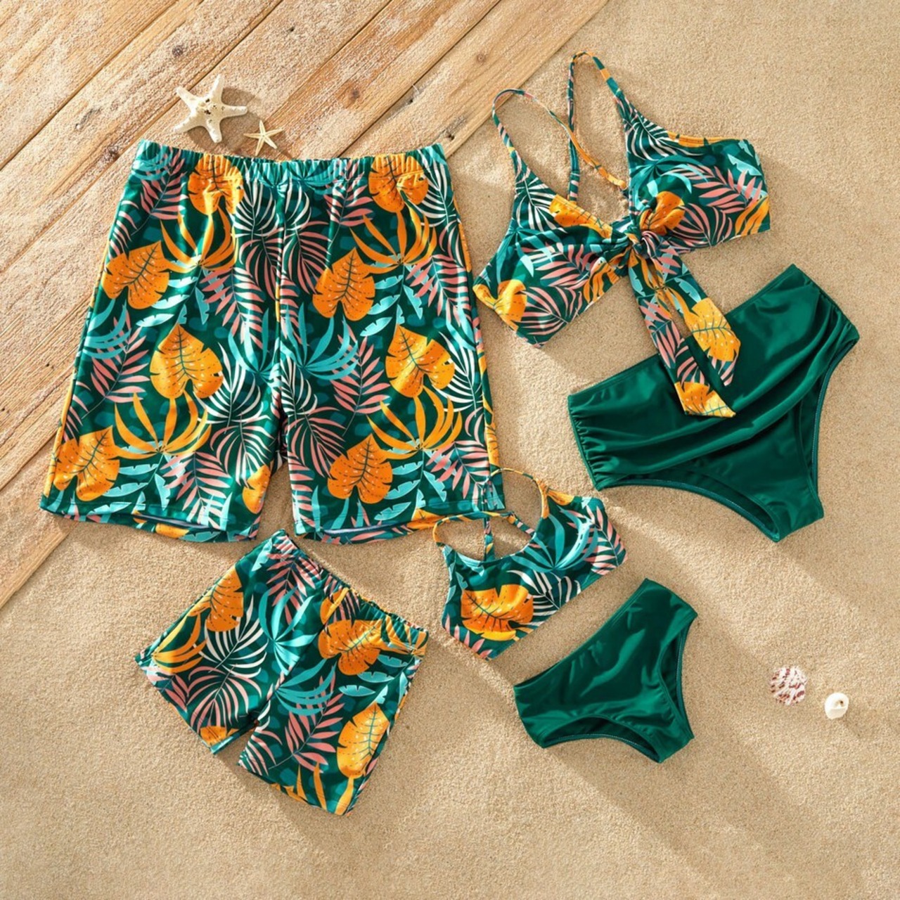 新作 PatPat 2021 夏 トロピカル リーフ プリント ストラップ付き マッチング水着 ファミリールック 子供用