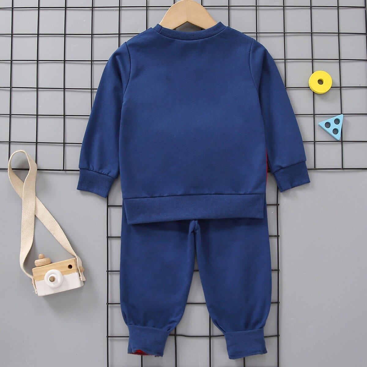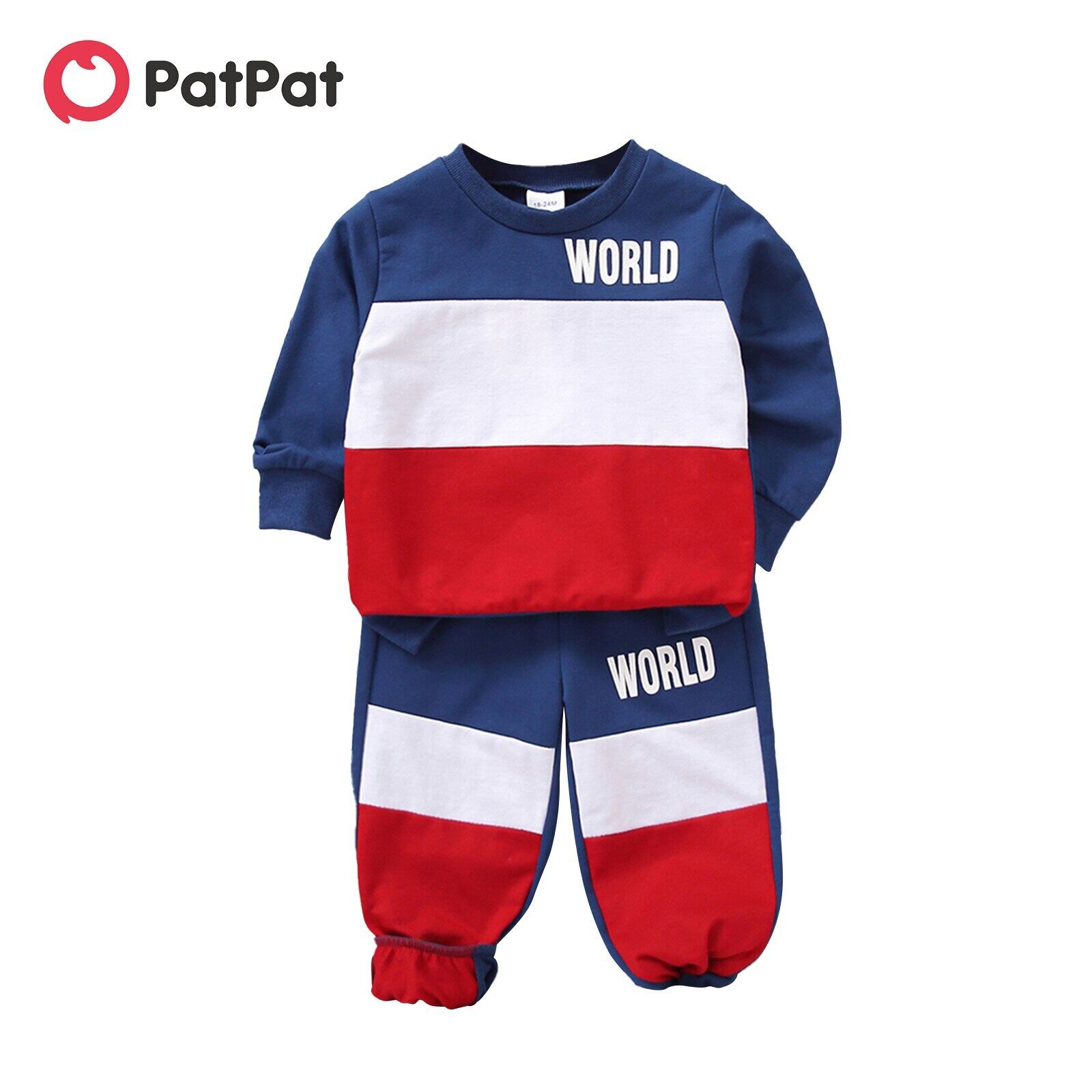 新作 PatPat 2ピース 幼児 男の子 レタープリント カラーブロック プルオーバー スウェットシャツとパンツセット
